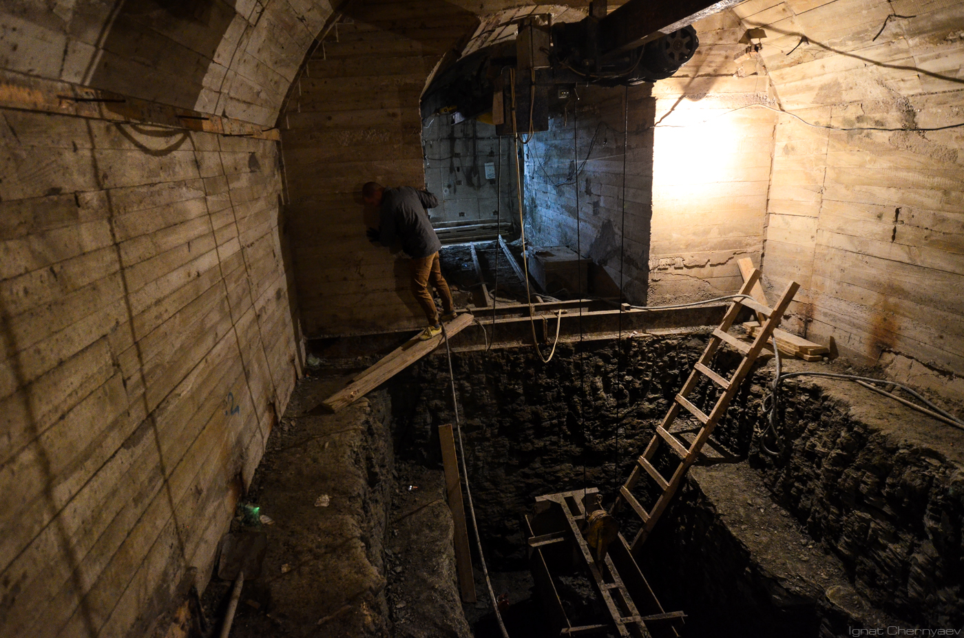 На 573 шахте ствол пройден на все, проектные, 50 колец. Занимаются переоборудованием под клетевой спуск. Копер в высокой степени готовности. Снизу, от перегонного тоннеля между Театральной и Горным институтом проходят подходной тоннель, который должен точной подойти под ствол и произойдёт соединение
