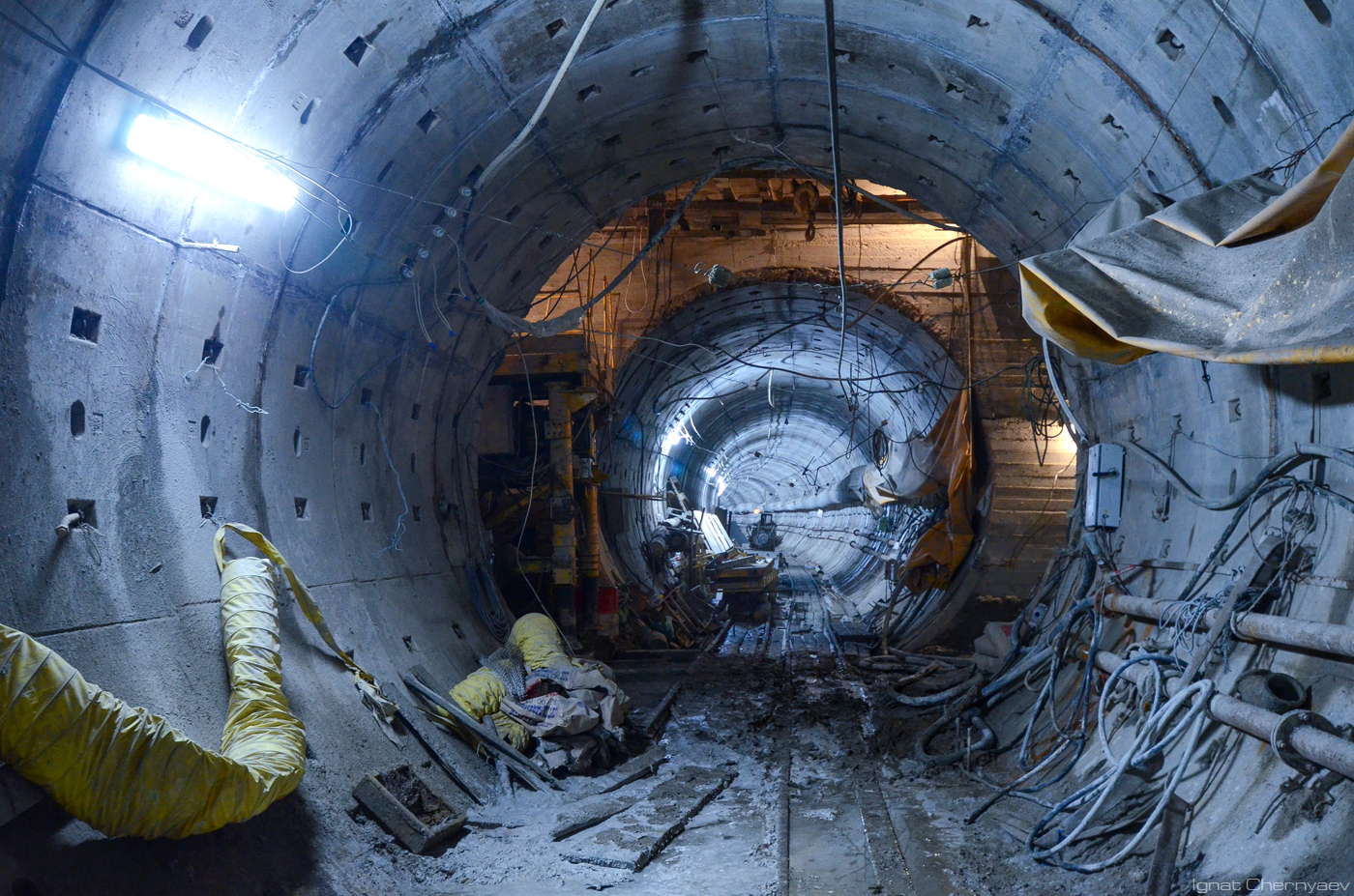 Продолжу экскурсию по строящемуся участку ЛПЛ уже в этой теме фотографиями с перегонных тоннелей между Театральной и Большим пр.
