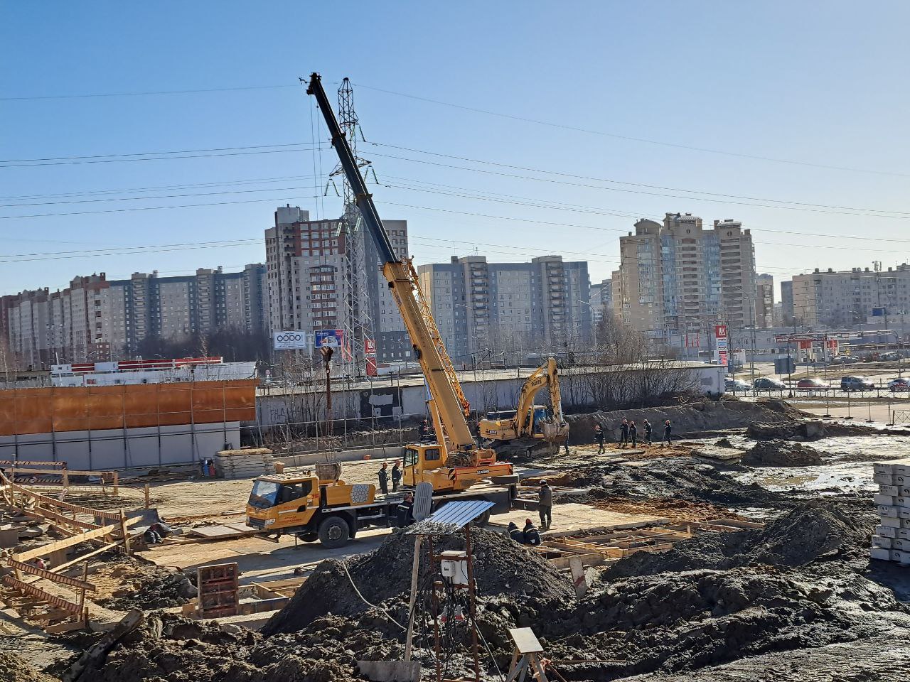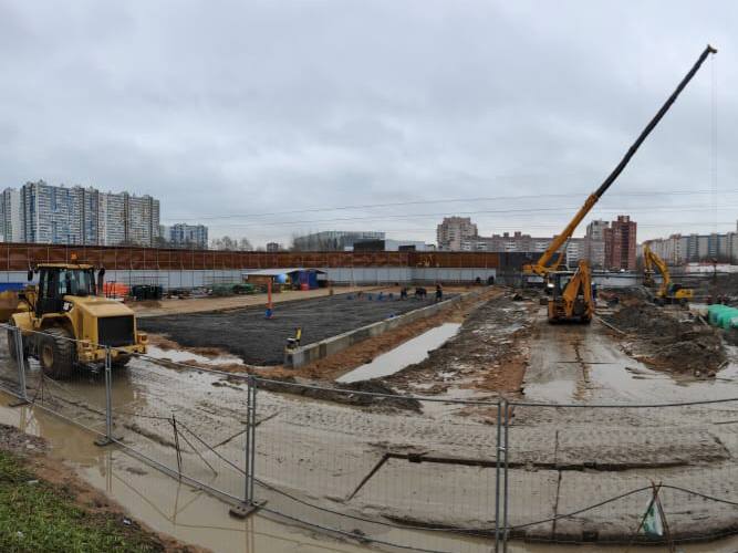 На строительной площадке в Приморском районе Санкт-Петербурга, рядом с пересечением Комендантского и Шуваловского проспектов, приступили сооружению форшахты выходной торцевой стены.