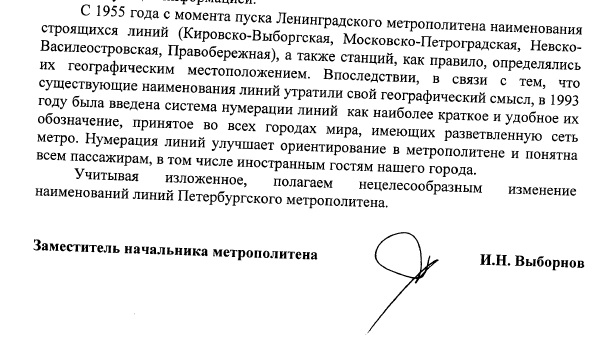 В прошлом году мне вот так ответили на идею о возвращении исторических названий линиям.