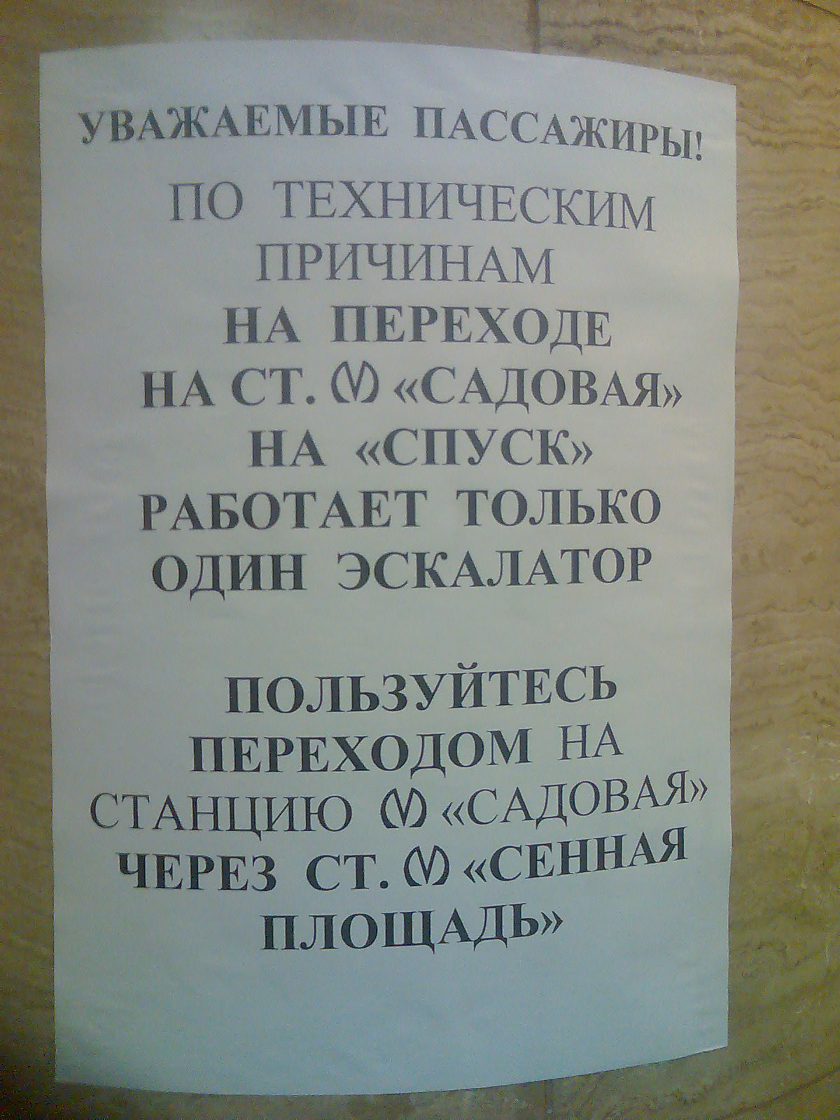 Спасская-Садовая С 1.04 по 10.04.2010г. ( один эскалатор на переходе). Реально???