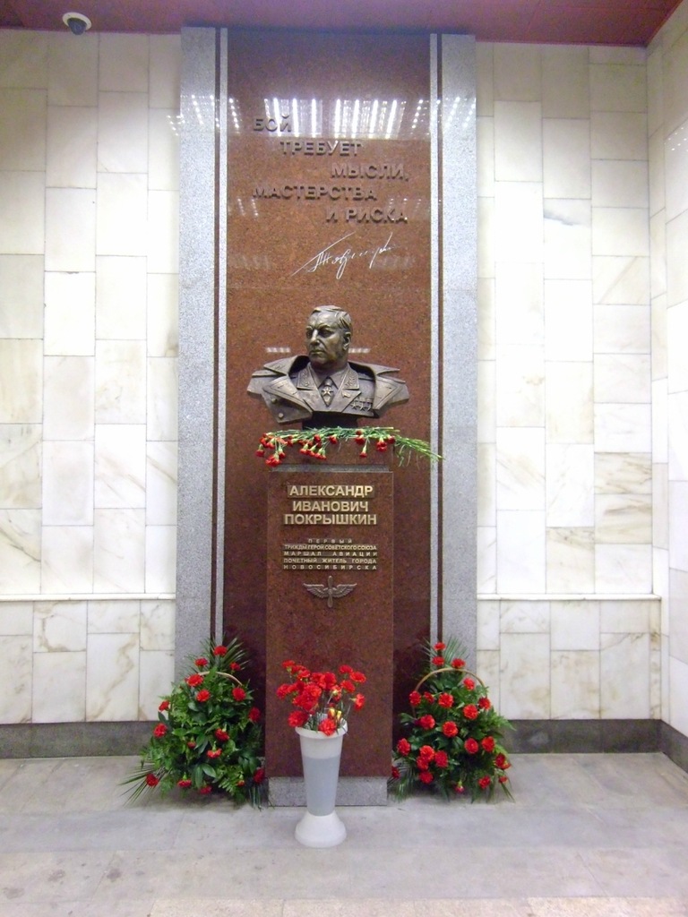 После этого состоялось открытие бюста маршала авиации Александра Покрышкина на станции Новосибирского метрополитена, носящей его имя. На стации выполнен комплекс тематических работ, существенно преобразивших ее облик. Так, на одном из входов станции установлен бюст великого летчика, в распределительном зале смонтирован мозаичный световой витраж, на стенах перехода размещена фотовыставка.