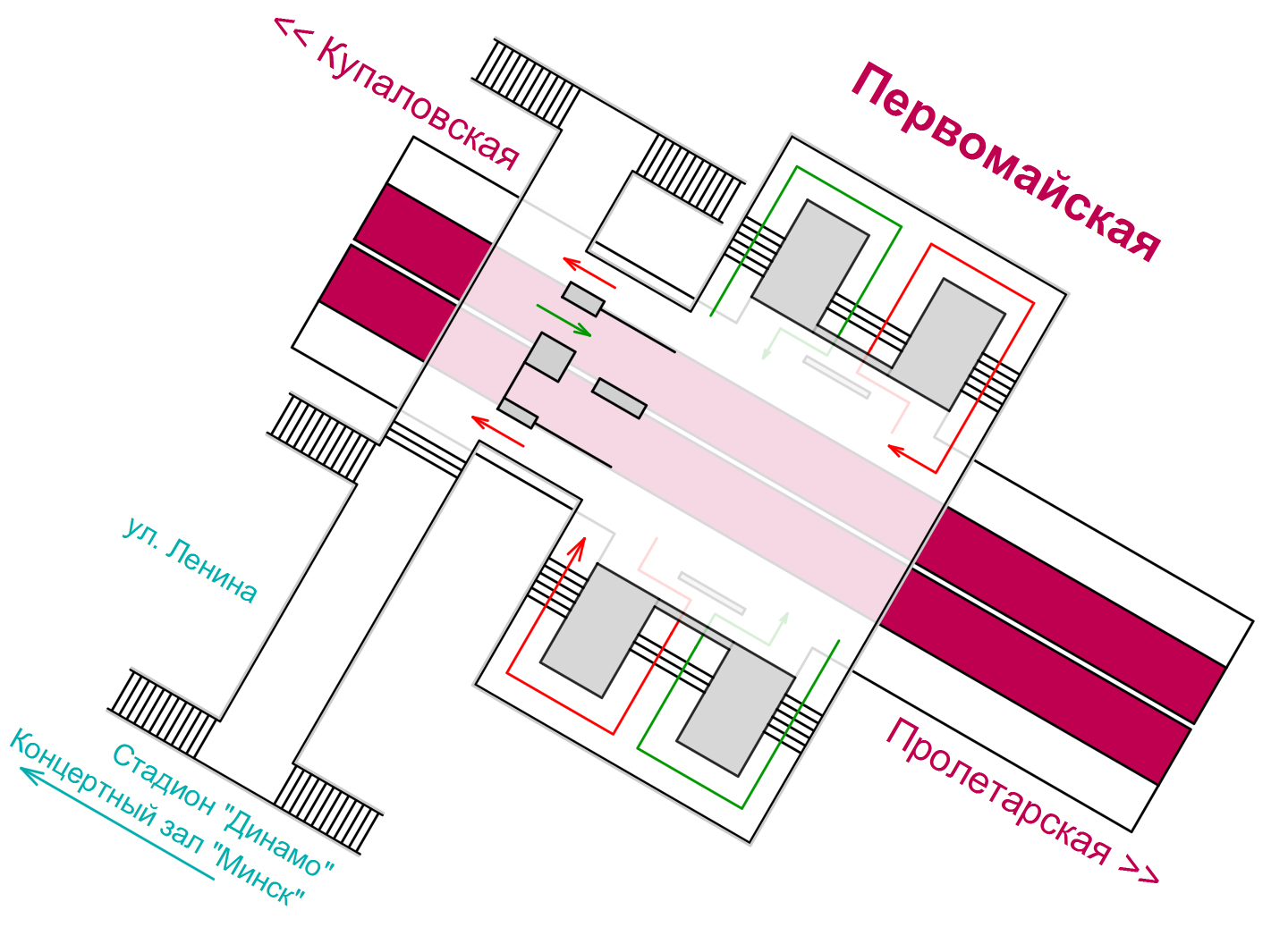 1. «Парк Культуры — радиальная» — «Парк Культуры — кольцевая»;