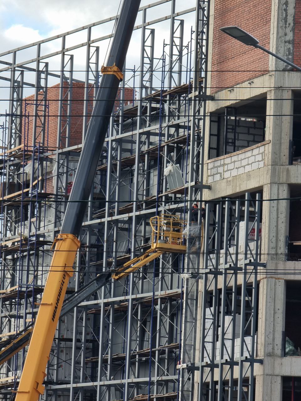 Металлоконструкции для завершающего 6 фасада уже завезены на площадку.