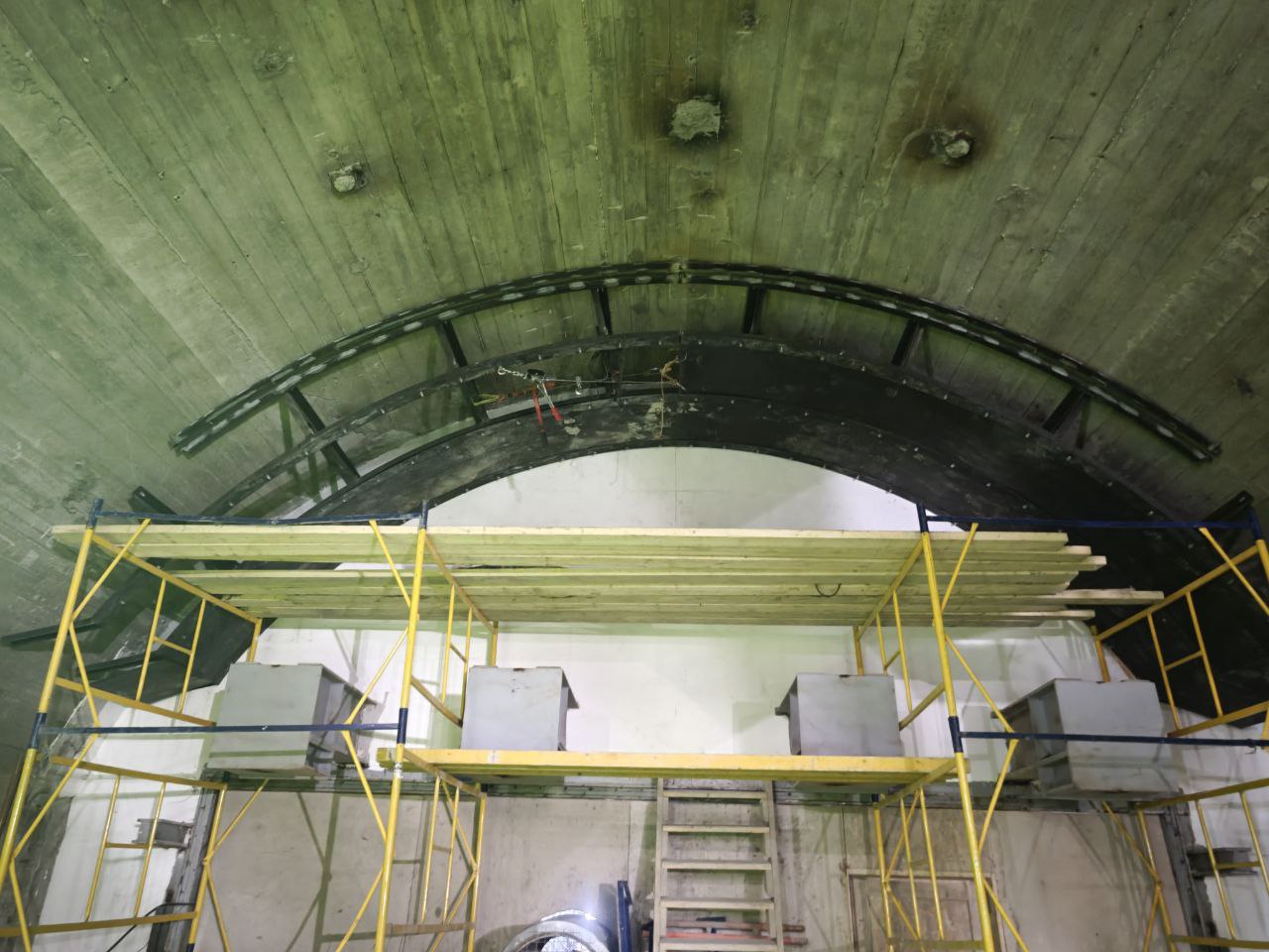 1).Монтаж зонтов верхнего свода в эскалаторной зоне.