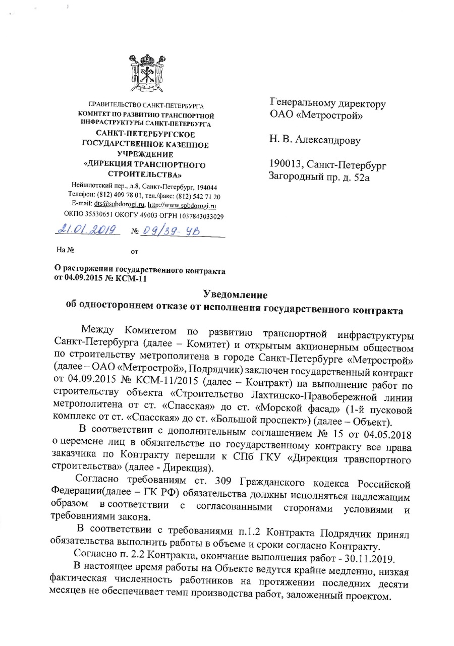 Gleb писал(а):А вот и официальный документ о расторжении государственного контракта на строительство участка ст.Спасская - ст. Большой пр.
