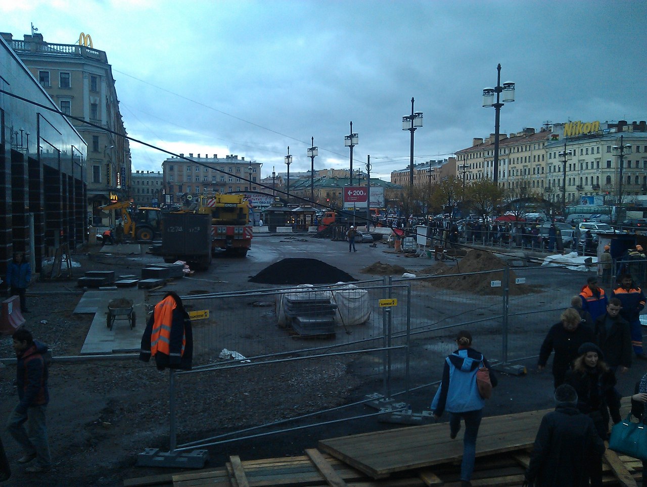 А ведь никто и не говорит, что над совмещёнными вестибюлями «Спасской» и «Сенной площади» будет восстановлено снесённое в 1960-х годах здание или какая-либо более ранняя постройка. А будет построено просто что-то «под старину». Конечно, исторический центр Петербурга – это не место для архитектурных экспериментов (хотя кто-то ведь разрешил построить того «уродца» над «Достоевской»