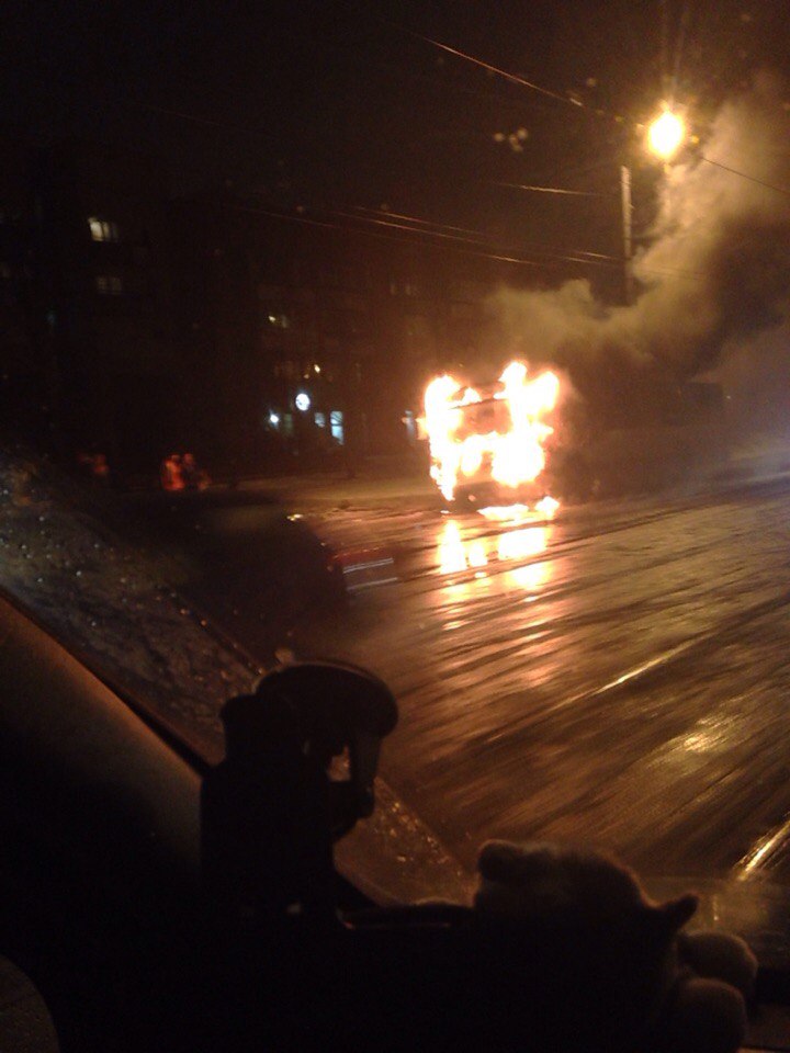По сообщениям очевидцев, сегодня вечером у дома № 44 по проспекту Науки в Калининском районе Петербурга сгорел троллейбус. На сделанных свидетелями фото видно, сто огонь охватил кабину пассажирского транспорта. К месту происшествия уже выехали пожарные, передает ГУ МЧС по городу. В настоящее время подробности инцидента уточняются.