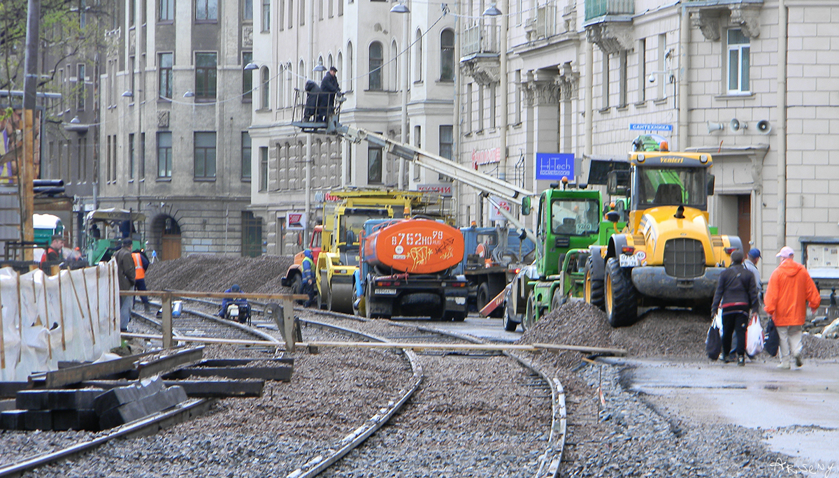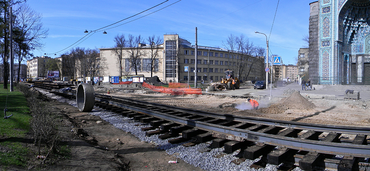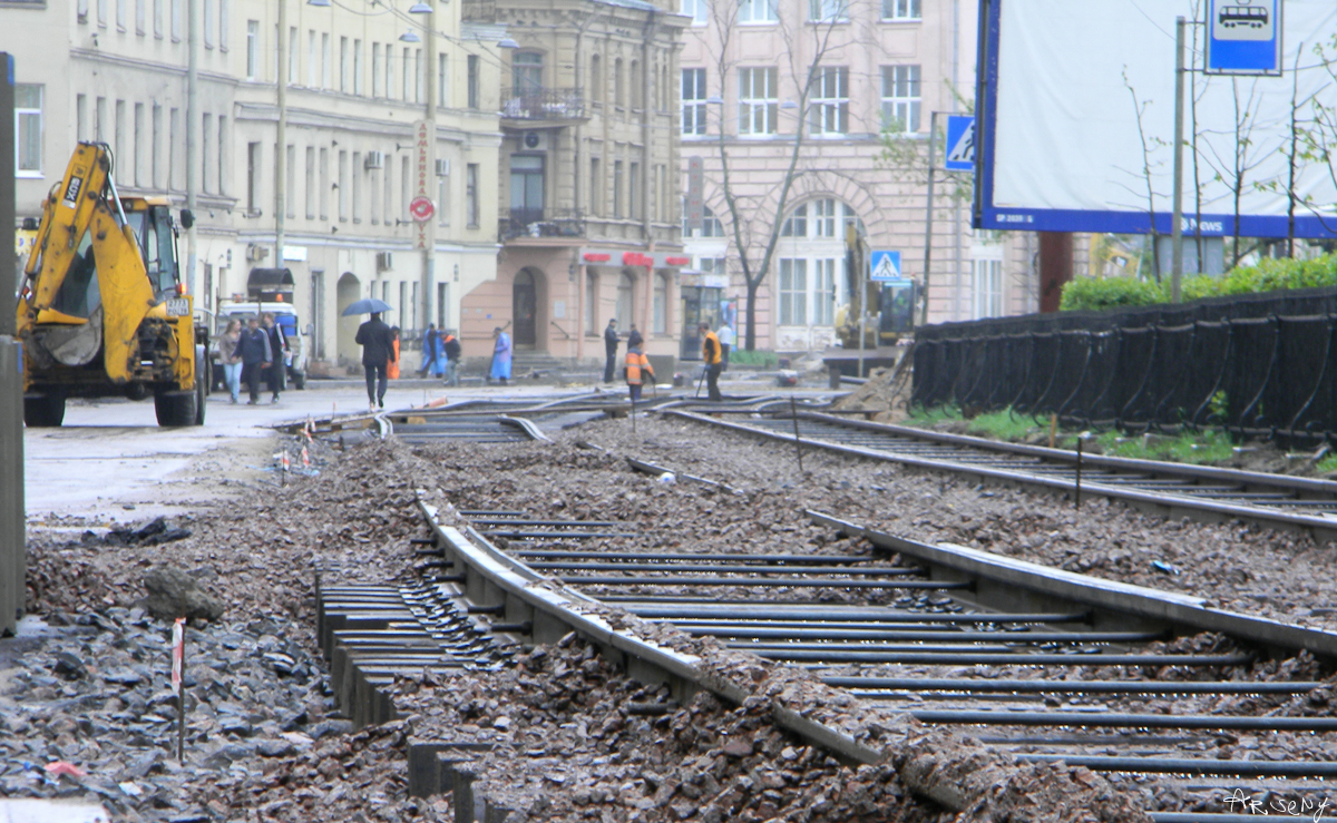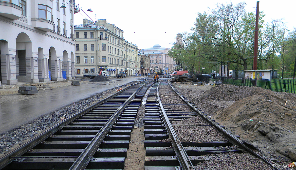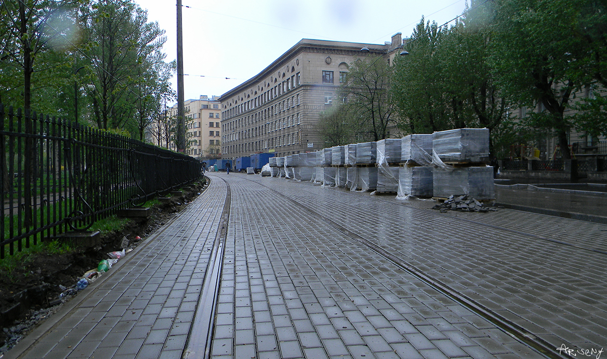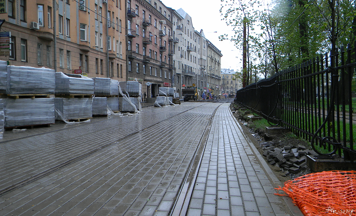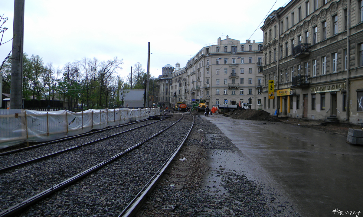 Ковыряют потихоньку, у перекрёстка с Каменноостровским уложен частично один путь.