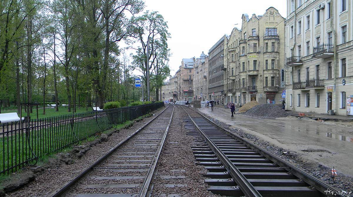 Пути уложены на всём участке от Добролюбова до Каменностровского.