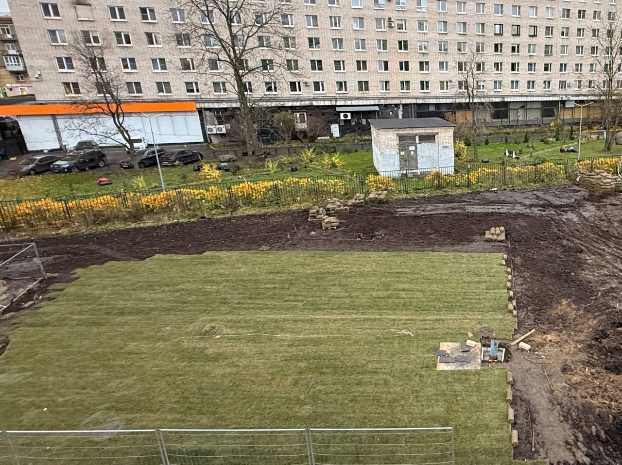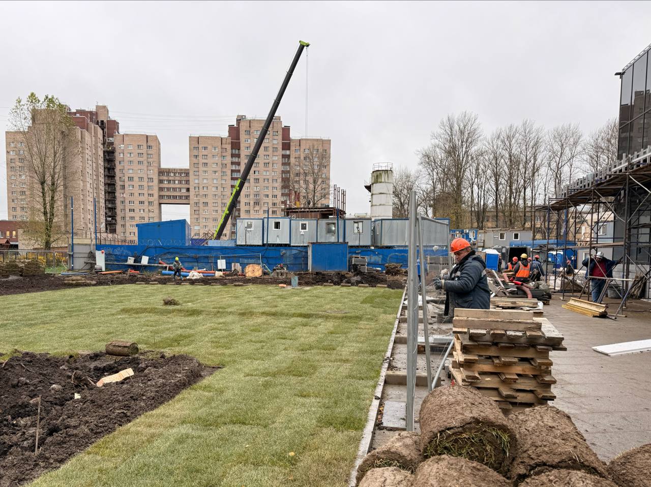На строительной площадке вестибюля станции «Путиловская» Красносельско-Калининской линии Петербургского метрополитена начали укладывать рулонный газон. Работы ведутся со стороны улицы Маршала Говорова.