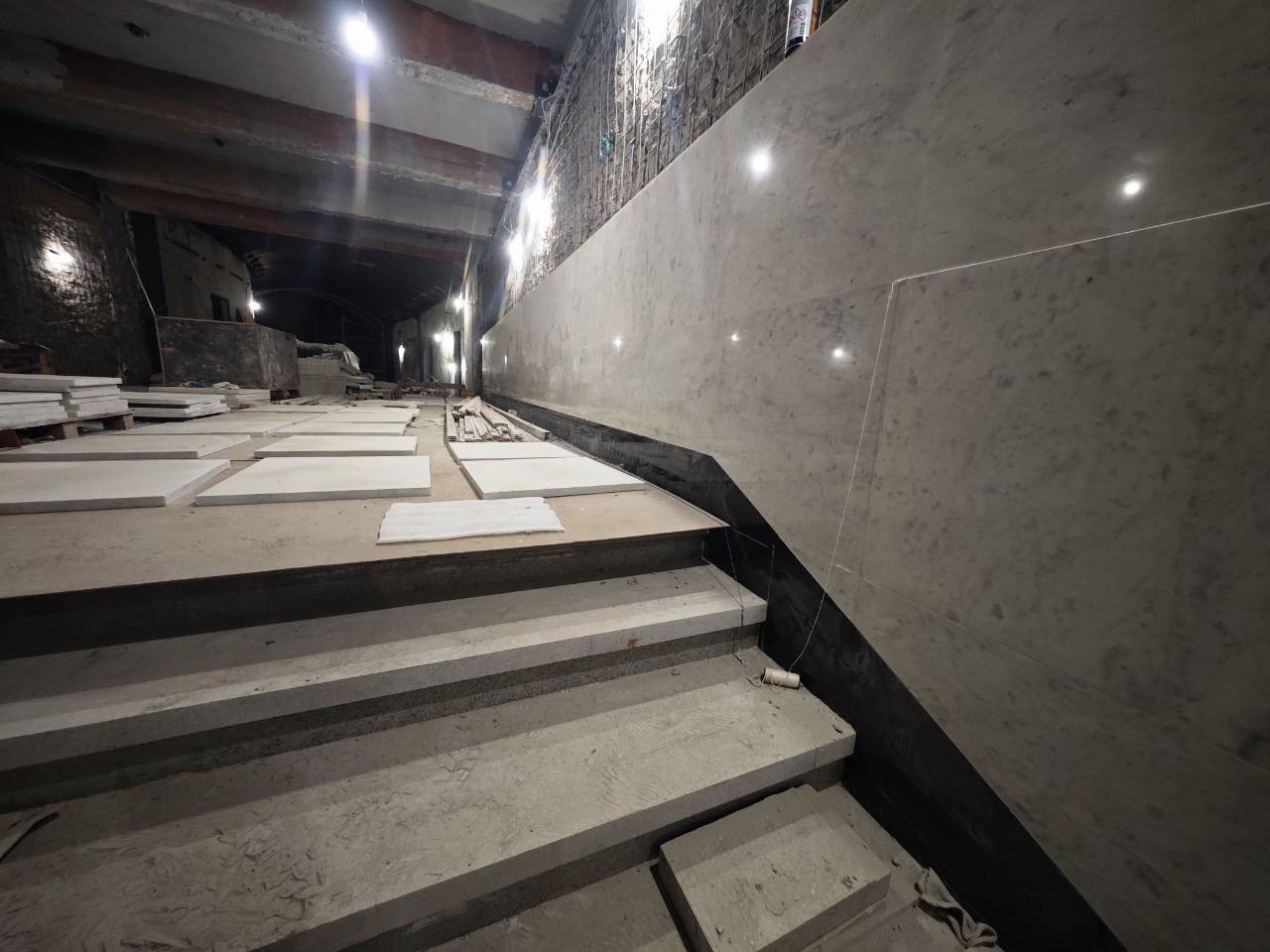 Сейчас на станции завершают обустройство вестибюля и облицовку фасада, а также размещают необходимое инженерное оборудование и системы.
