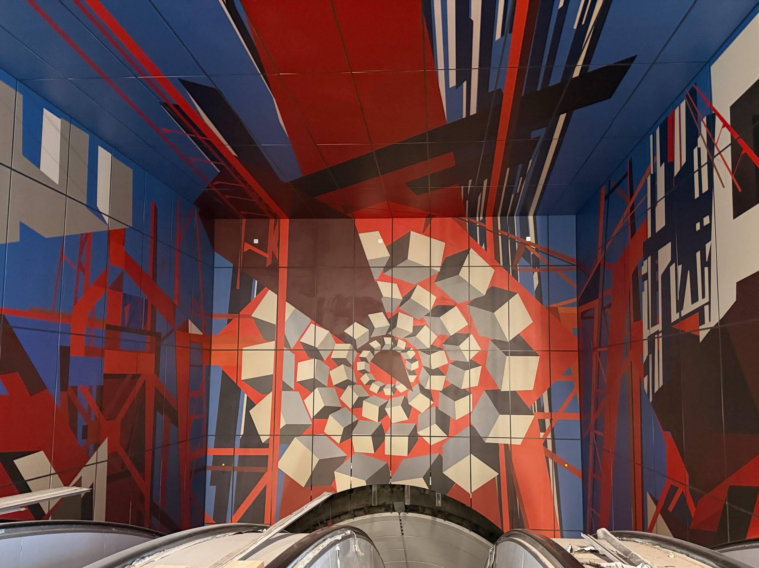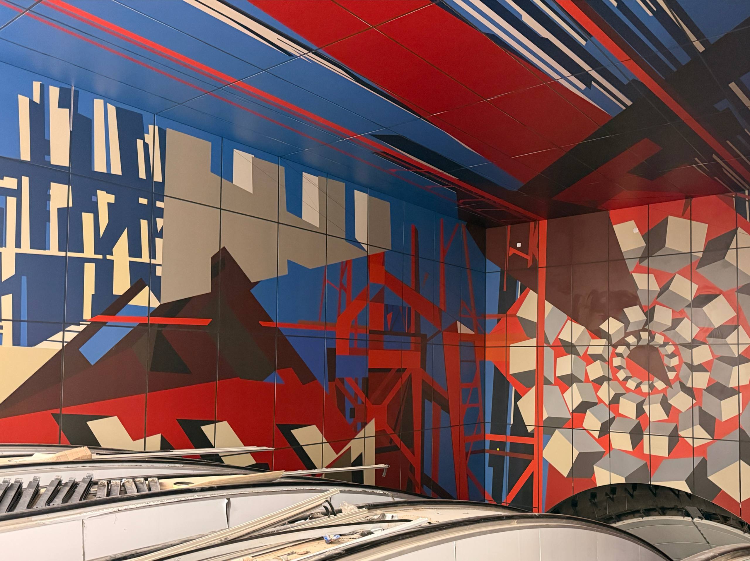 В вестибюле станции «Путиловская» строящейся Красносельско-Калининской линии Петербургского метрополитена завершили монтаж панно из декоративных алюминиевых панелей с печатью. Дизайн основан на истории Путиловского (ныне Кировского) завода и изображает машиностроительное, чугунолитейное и художественно-литейное производства.