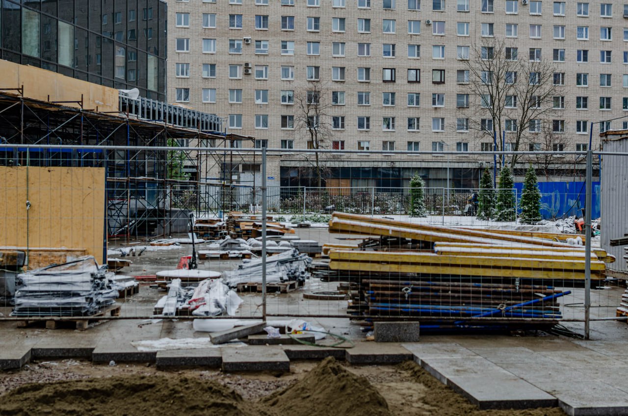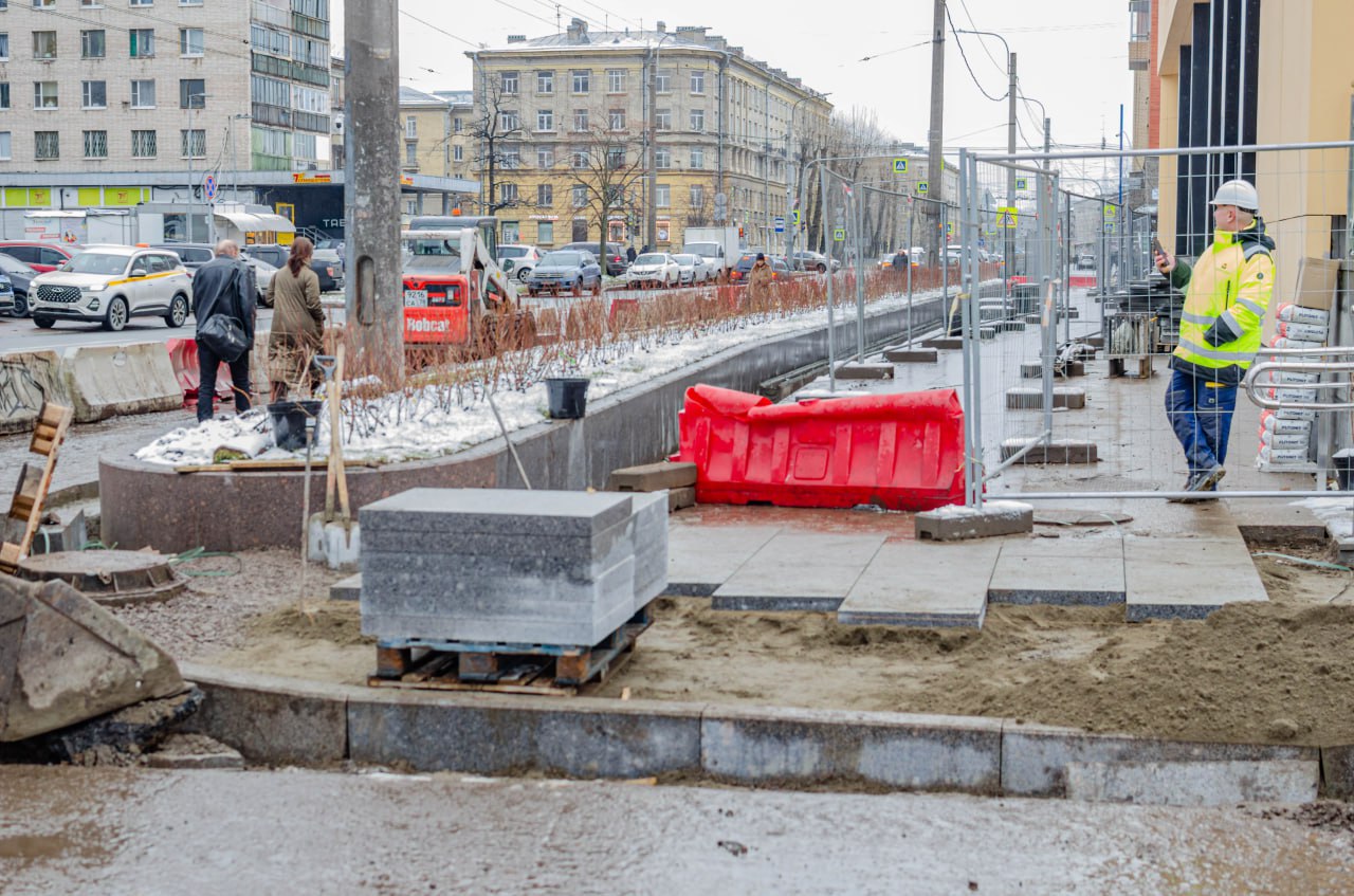 Работы по благоустройству территории вокруг вестибюля продолжаются.