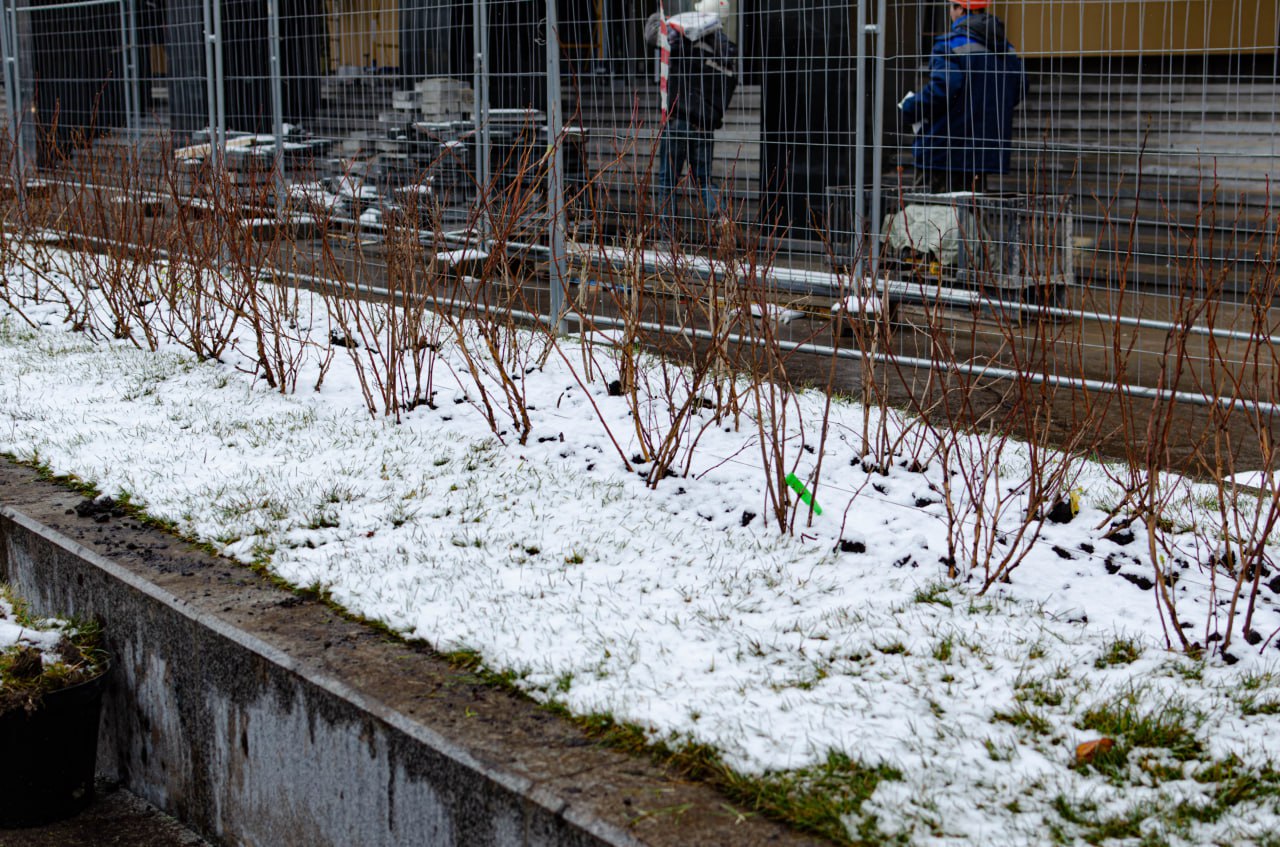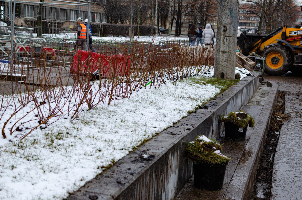 Сегодня в эту "клумбу", в смесь из земли и снега высаживали кустарники. Не благоустройство, а гибрид порнографии с отмыванием денег. В лучшем случае 1% этих кустов зазеленеет весной