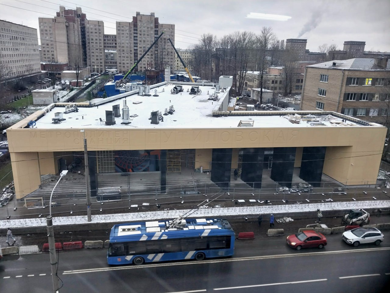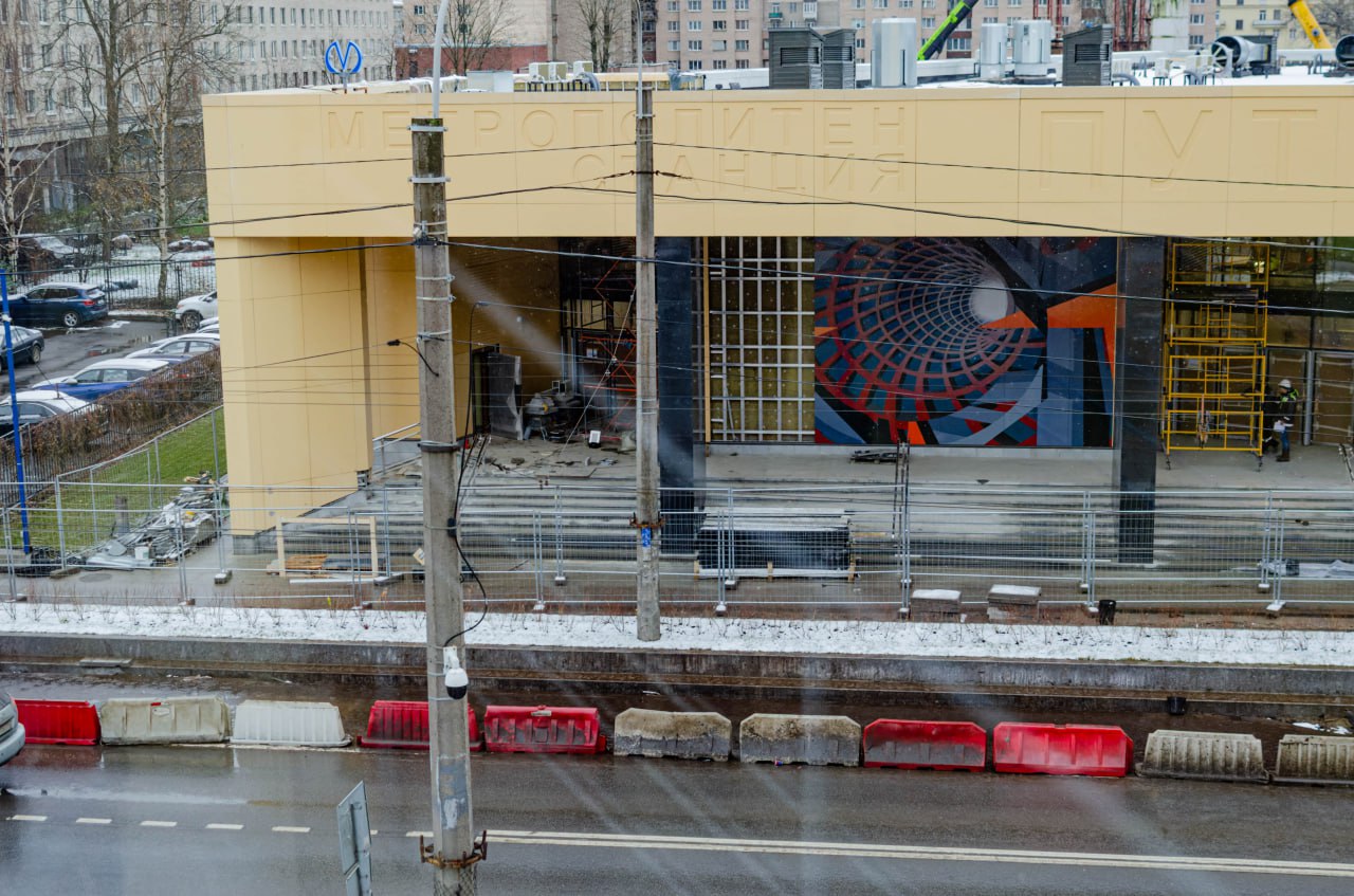 Зимние фотографии вестибюля станции «Путиловская» Красносельско-Калининской линии Петербургского метрополитена.