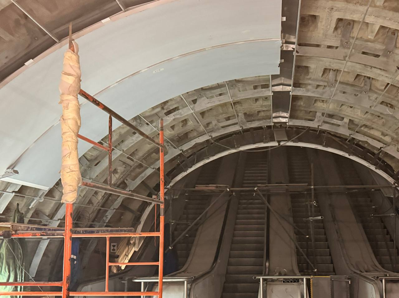 фото 1 - начало монтажа потолочных зонтов у МНХ.