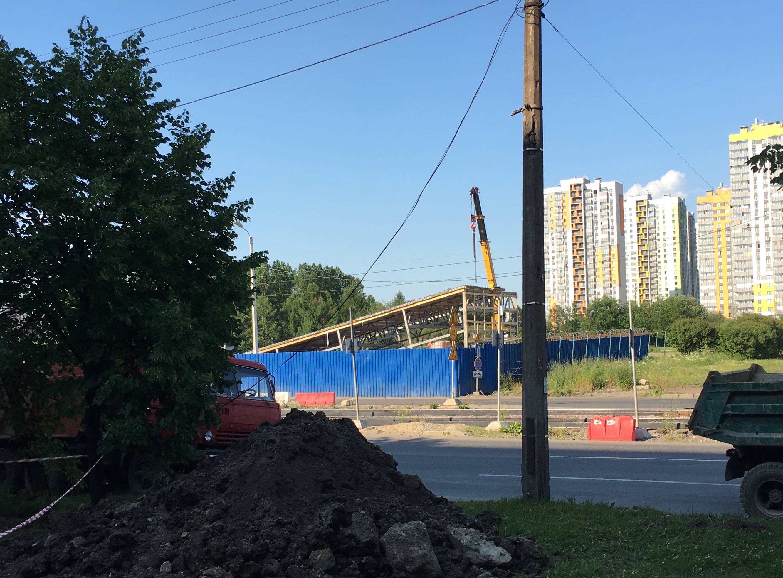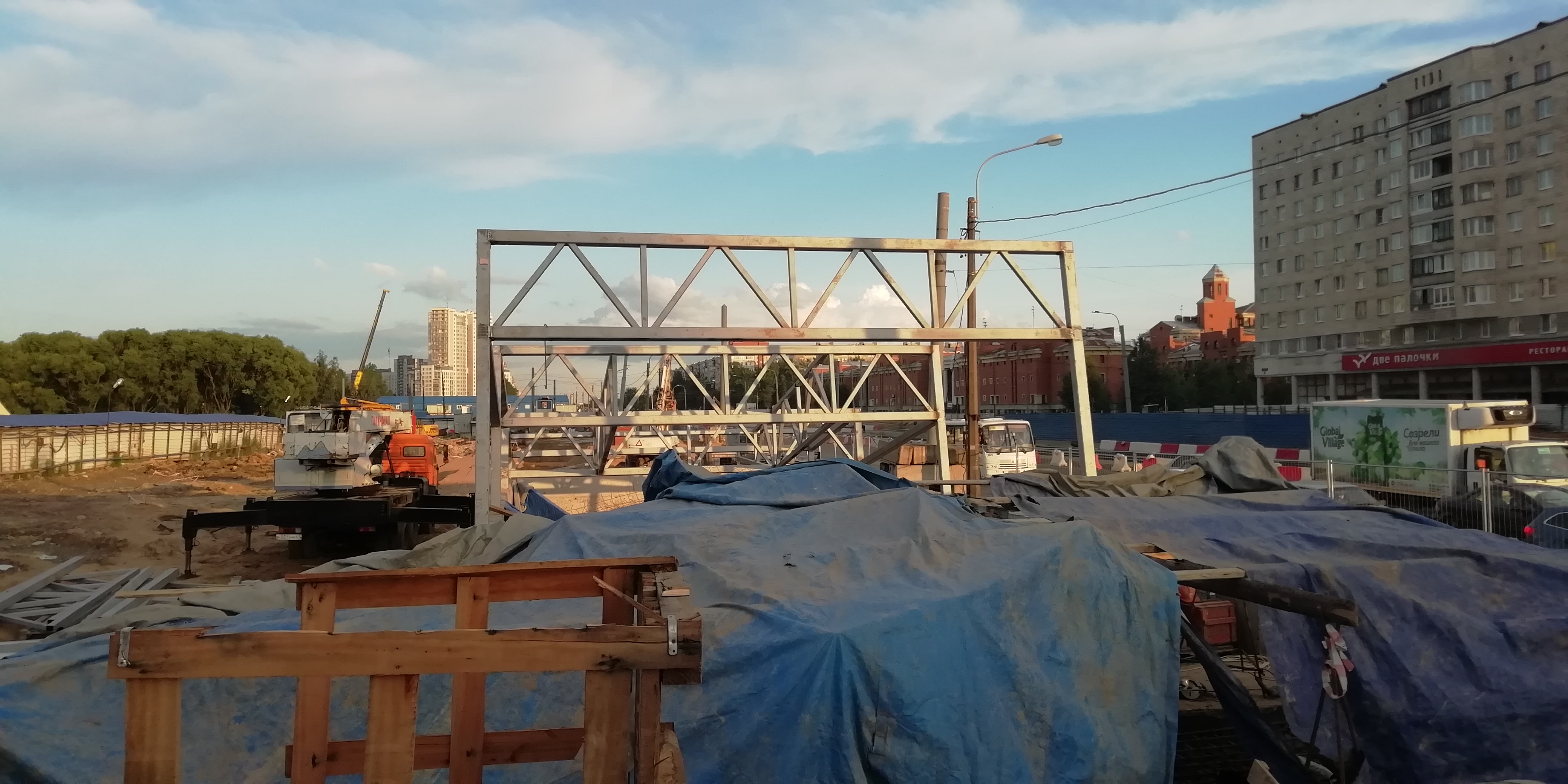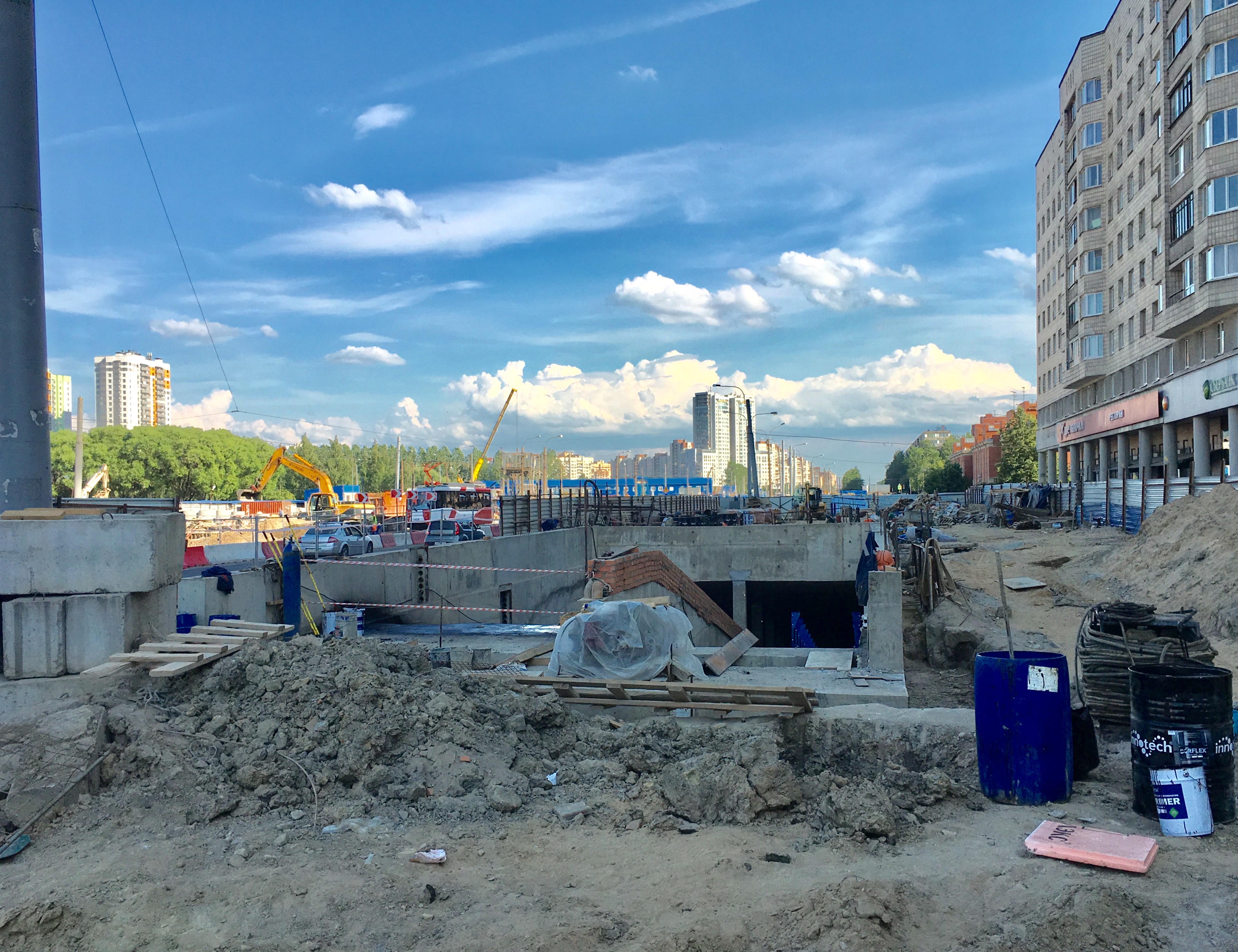 Горный комплекс сейчас уже совсем разобран, как и временная крыша южного выхода, а на Бухарестскую возвращено движение.