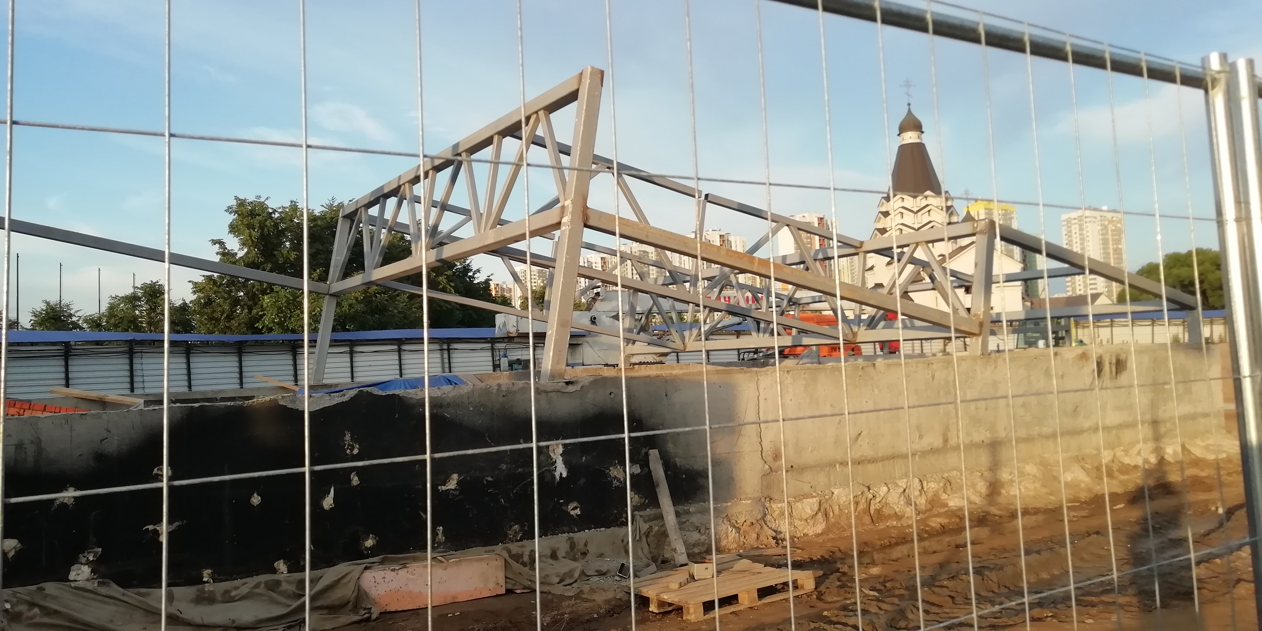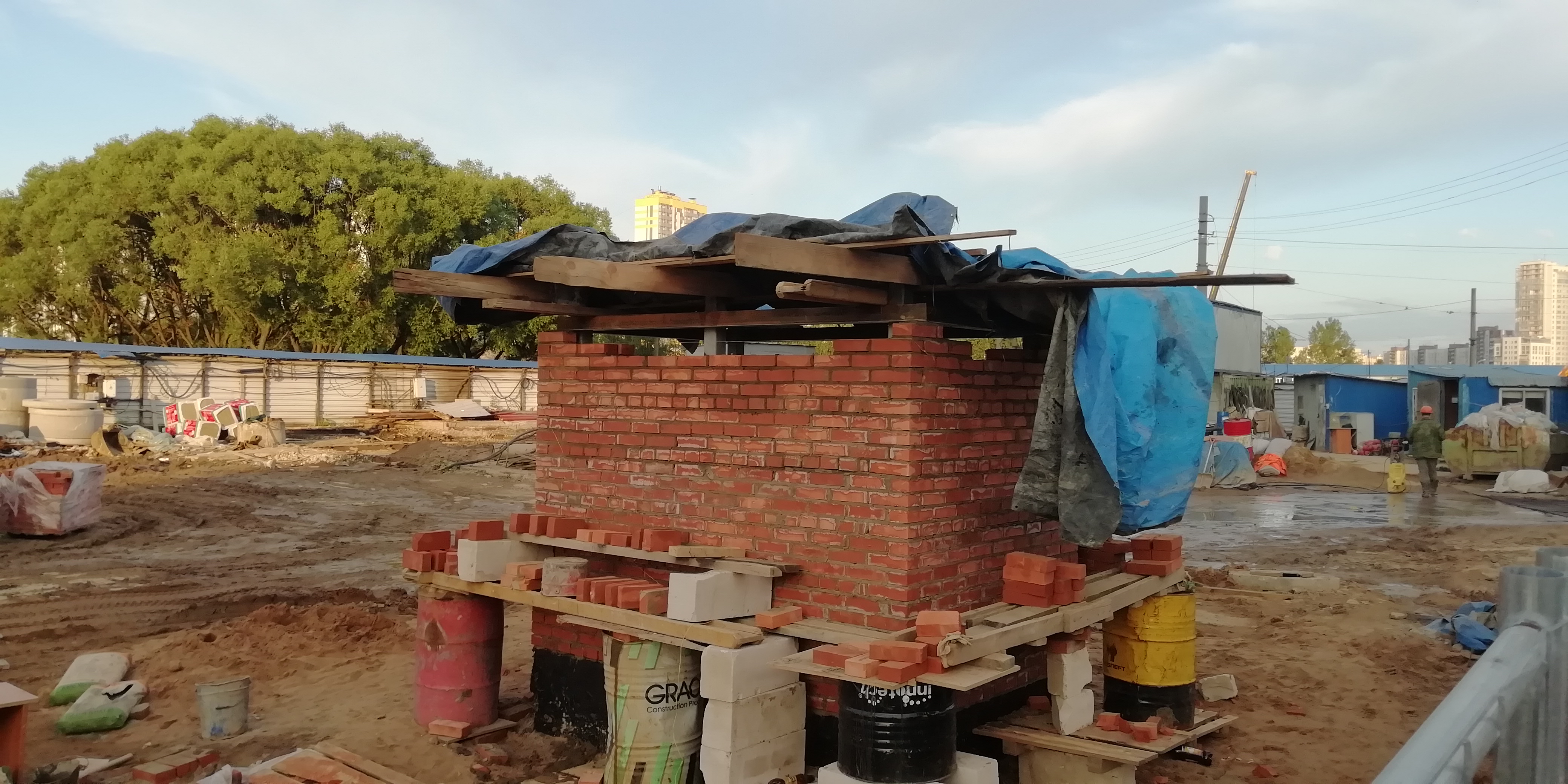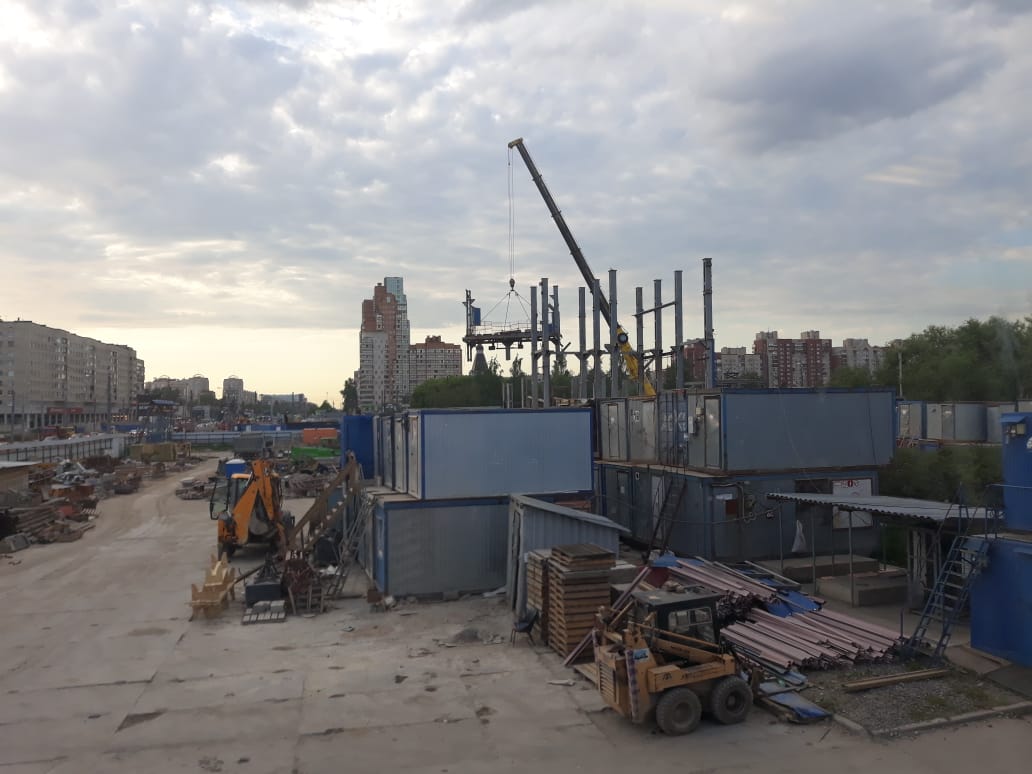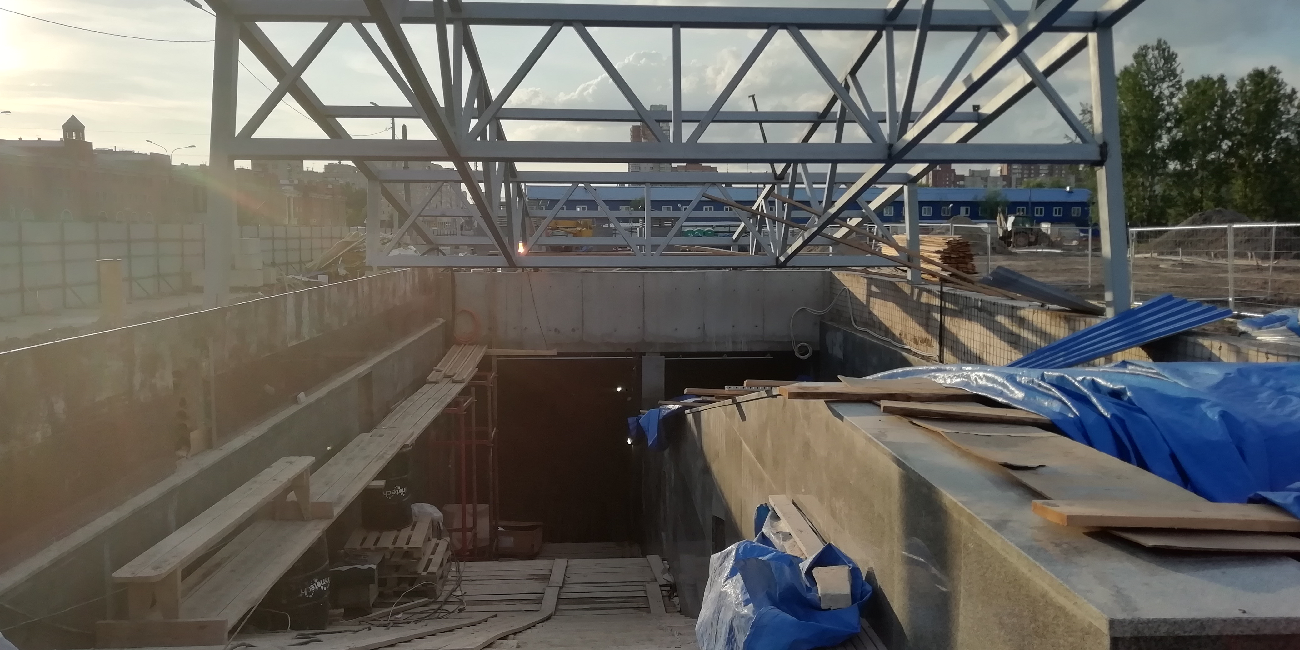 Горный комплекс сейчас уже совсем разобран, как и временная крыша южного выхода, а на Бухарестскую возвращено движение.