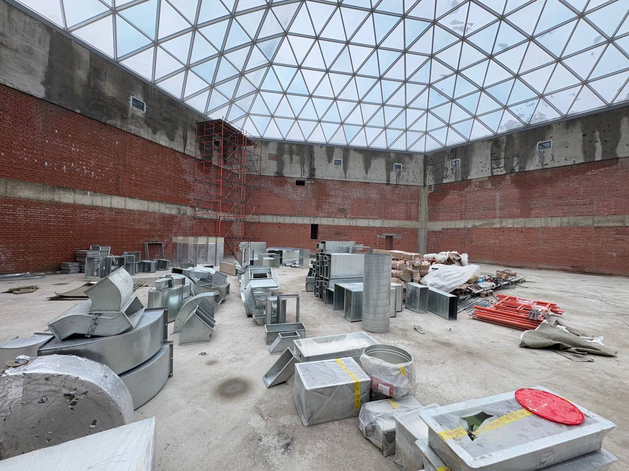 Подготовка к монтажу вентиляции в помещении под куполом.
