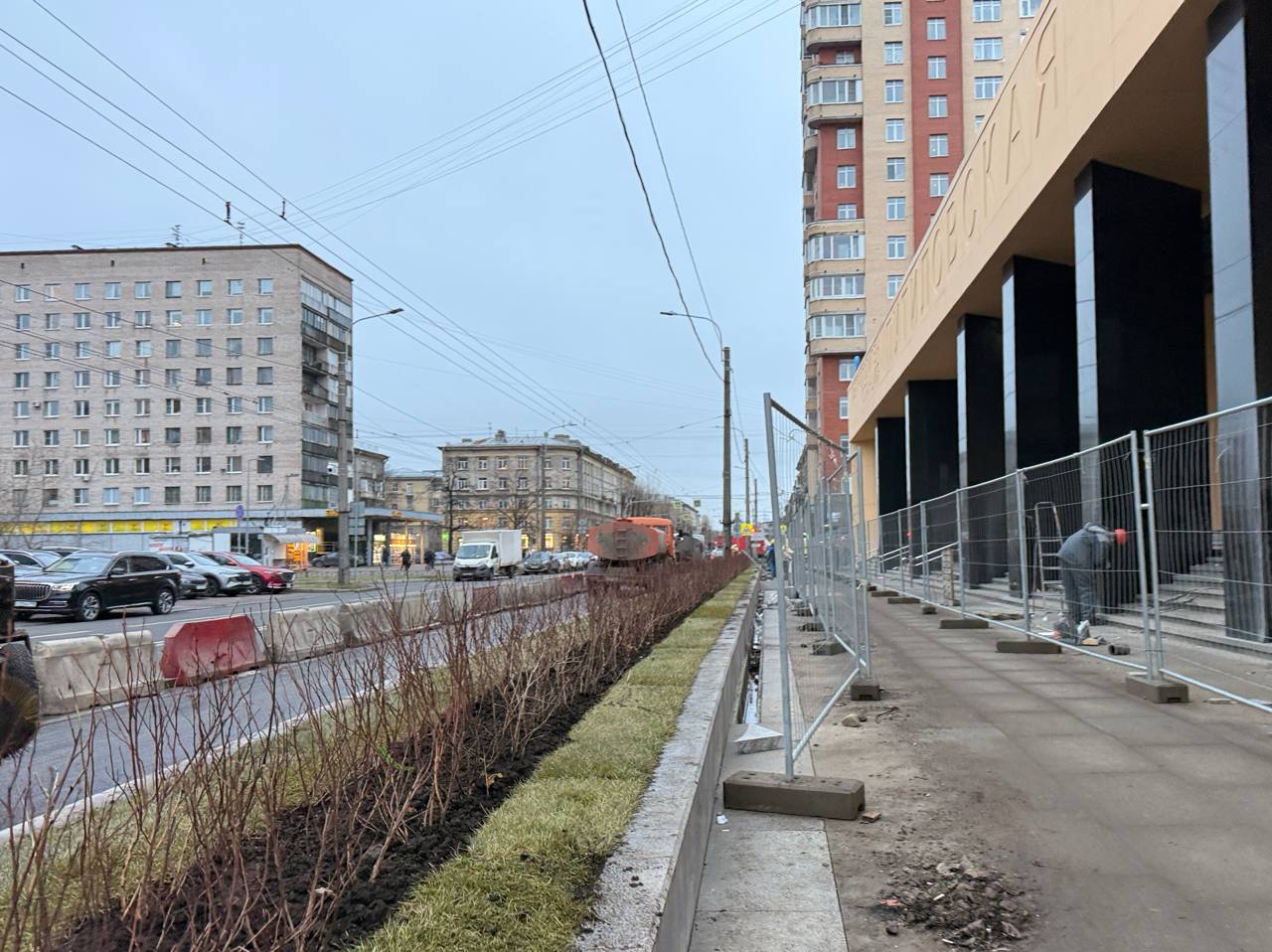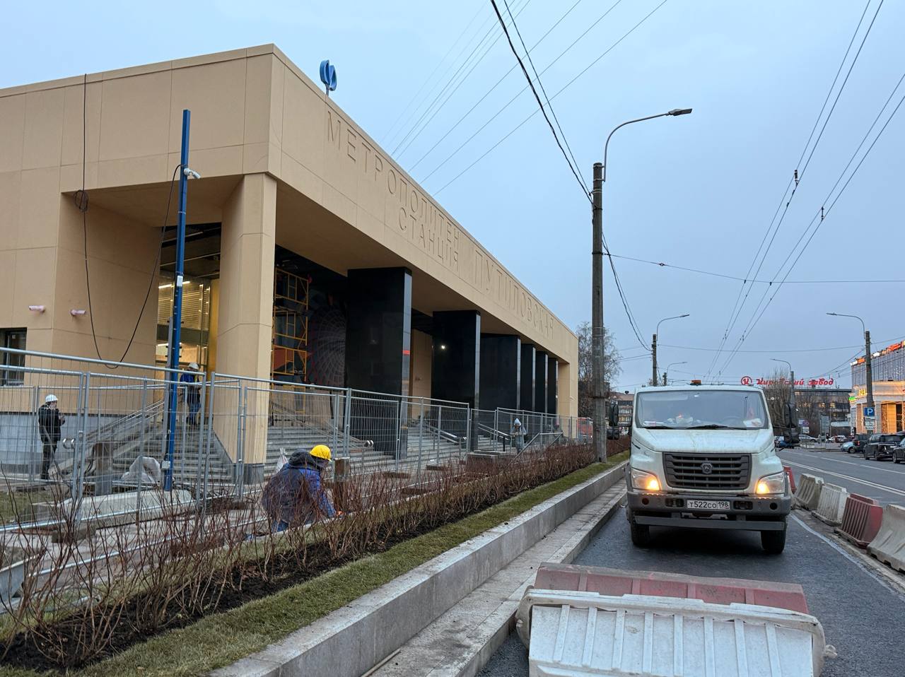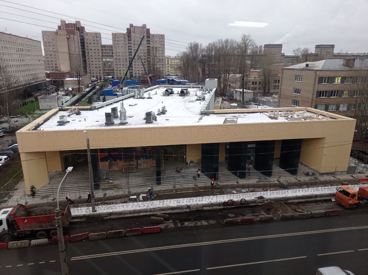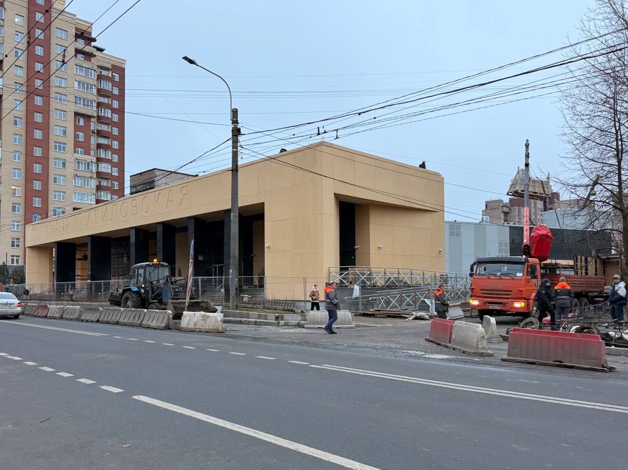 На строительной площадке вестибюля станции «Путиловская» Красносельско-Калининской линии метрополитена Петербурга продолжаются работы по благоустройству прилегающей территории: