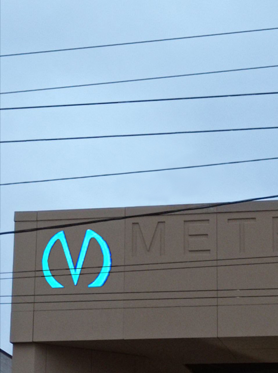 Ах, кто бы догадался вместо буквы М в надписи, сделать подсвечиваемый изнутри логотип Петербургского метро.