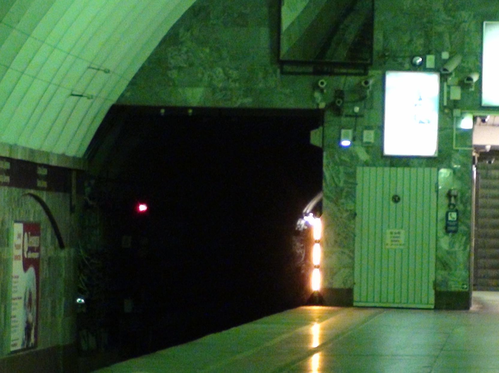 Вчера вечером был выключен первый от эскалаторов фонарь на платформе. Из-за этого при входе на платформу образовался полумрак.