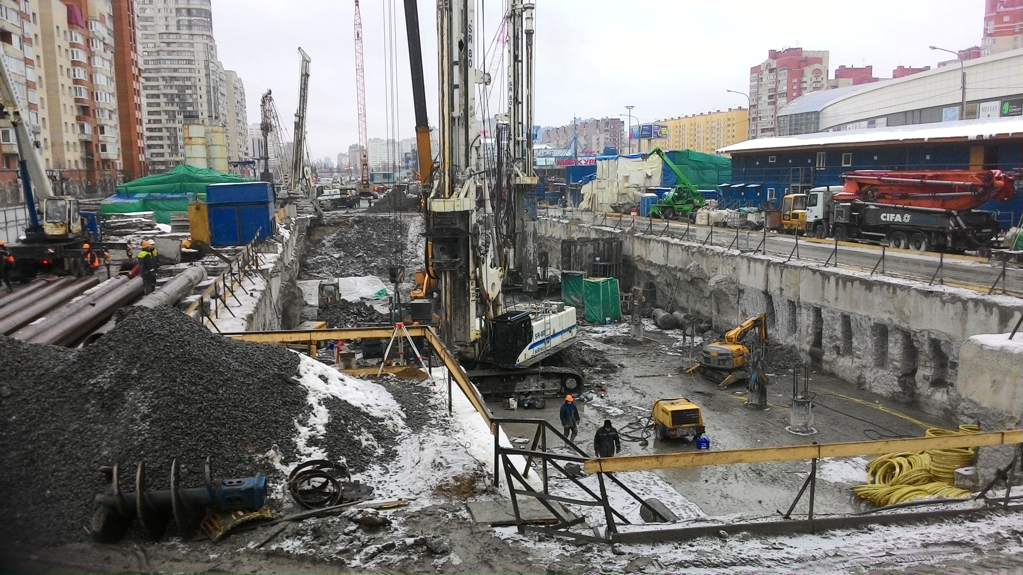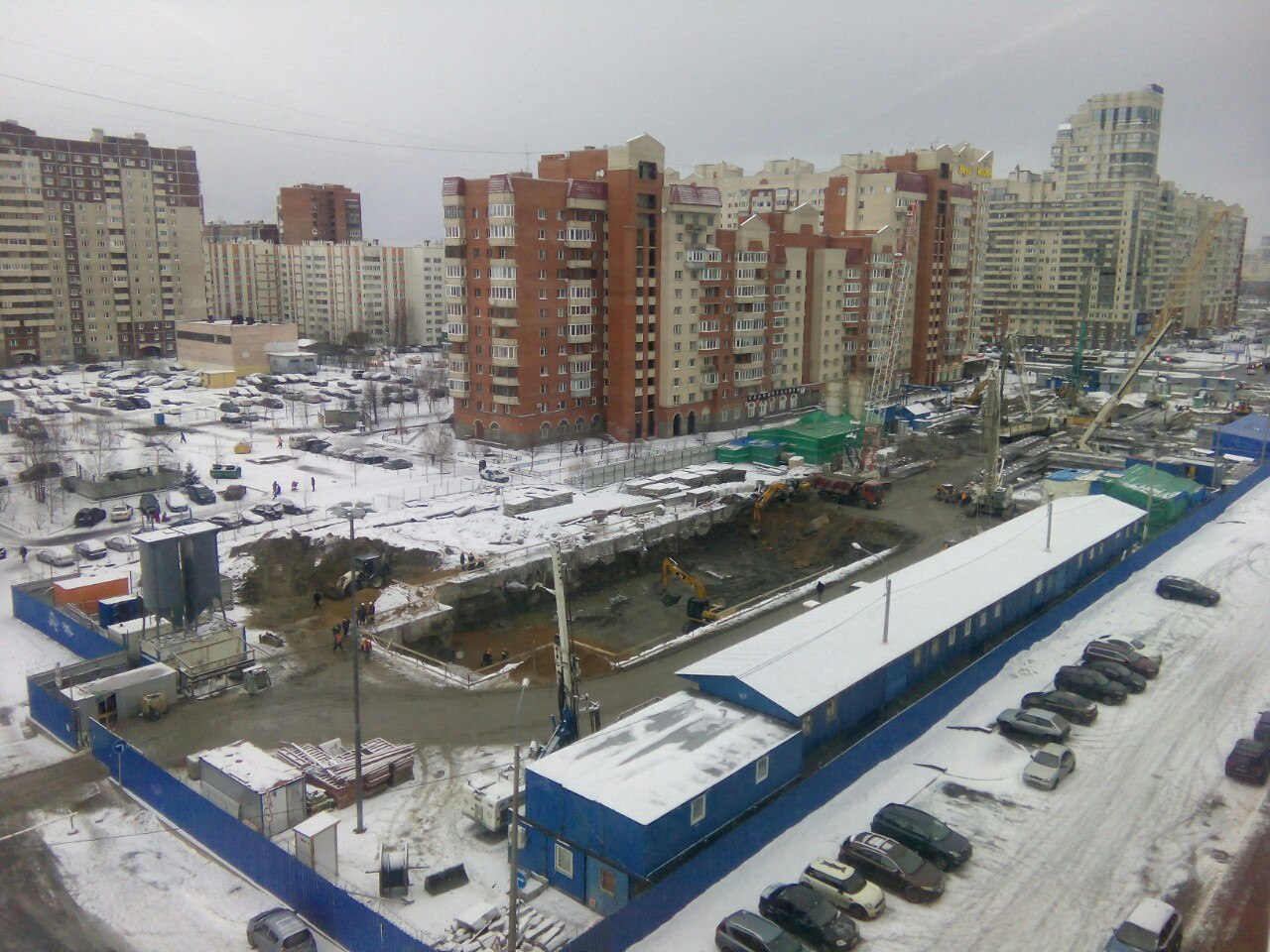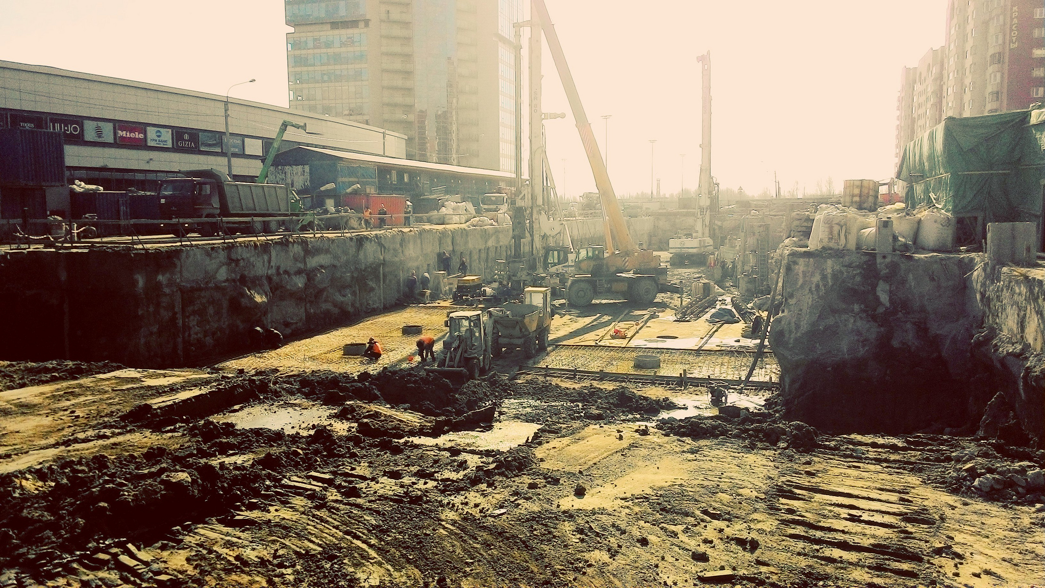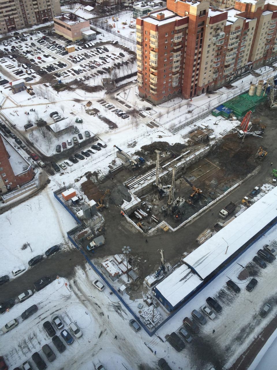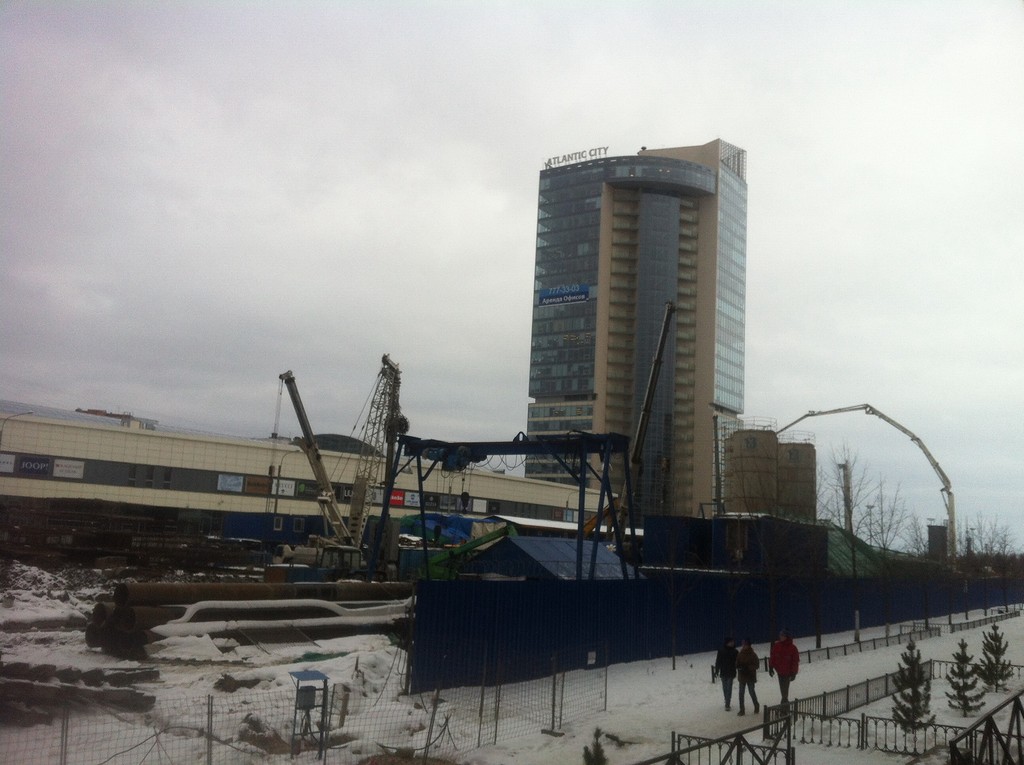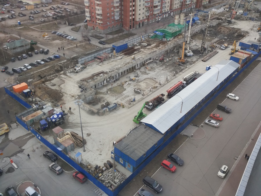 Необычный взгляд на строящуюся станцию — сверху из ближайшего БЦ. Без подробностей, просто красивый ракурс.