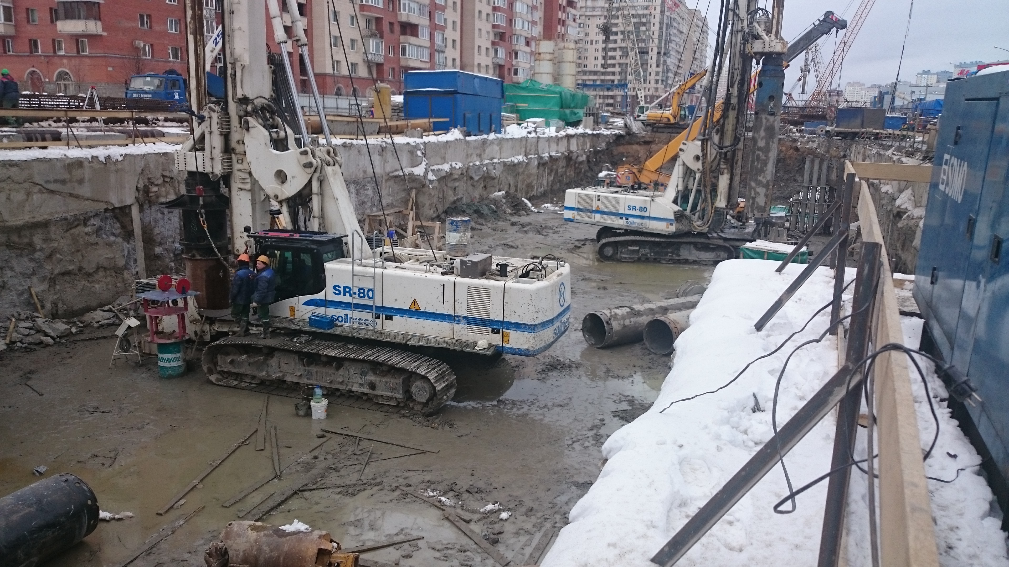 Видео прислала местная жительница, которая вела съемку из окна соседнего со строительством дома. По ее словам, внизу под строительством могут находиться так называемые "плывуны".