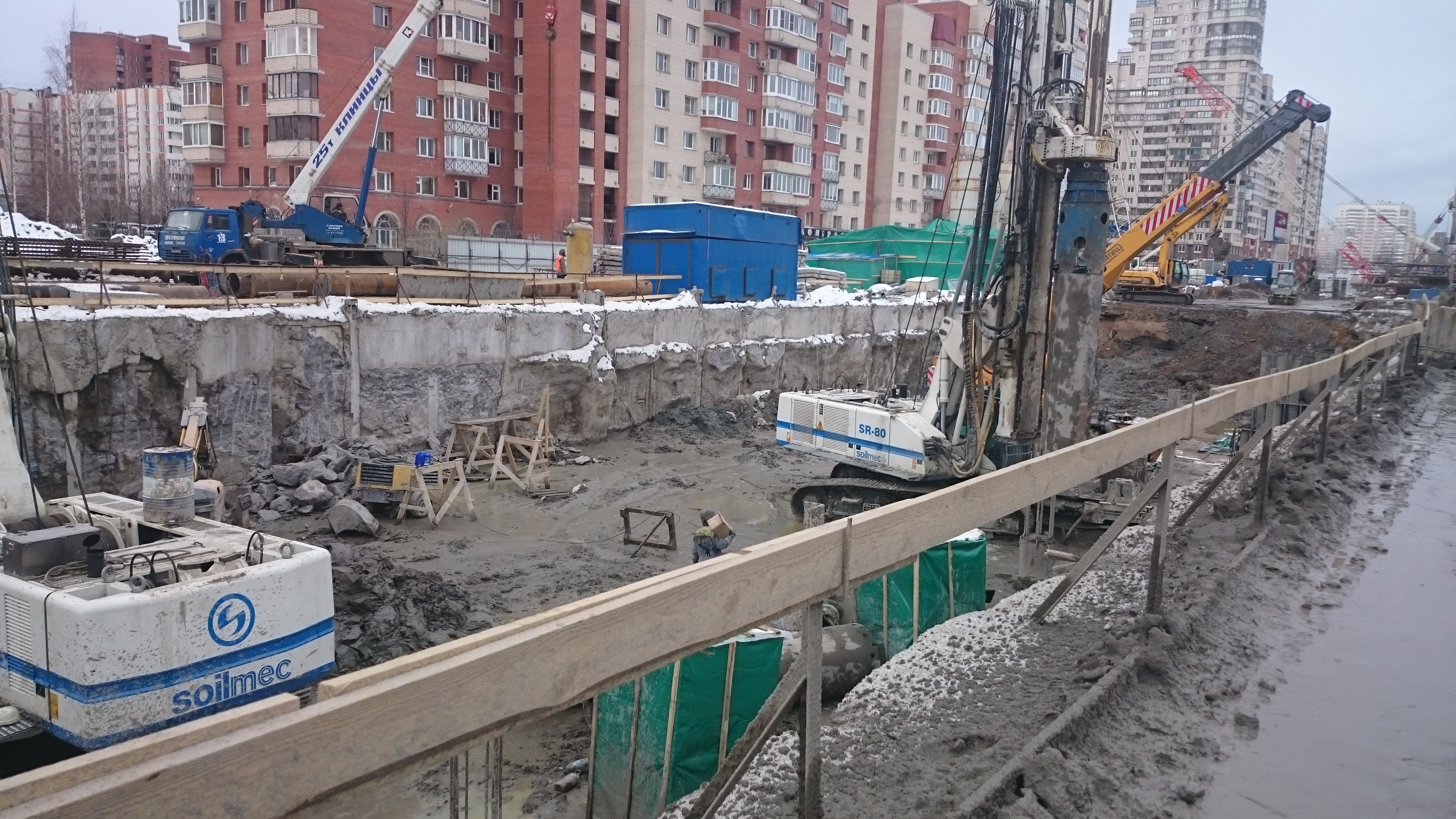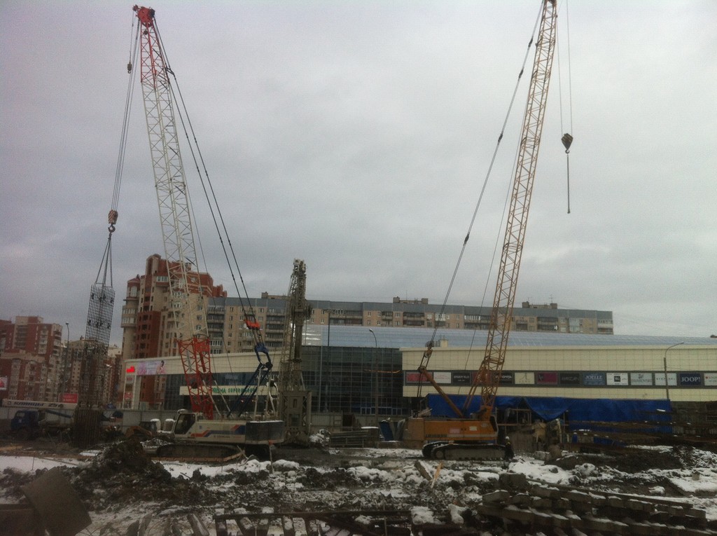 На Туристской улице в Санкт-Петербурге при строительстве метрополитена предположительно в цементе застрял экскаватор. На кадрах, которые прислал пользователь приложения Lifecorr, видно, как один экскаватор откапывает другой.