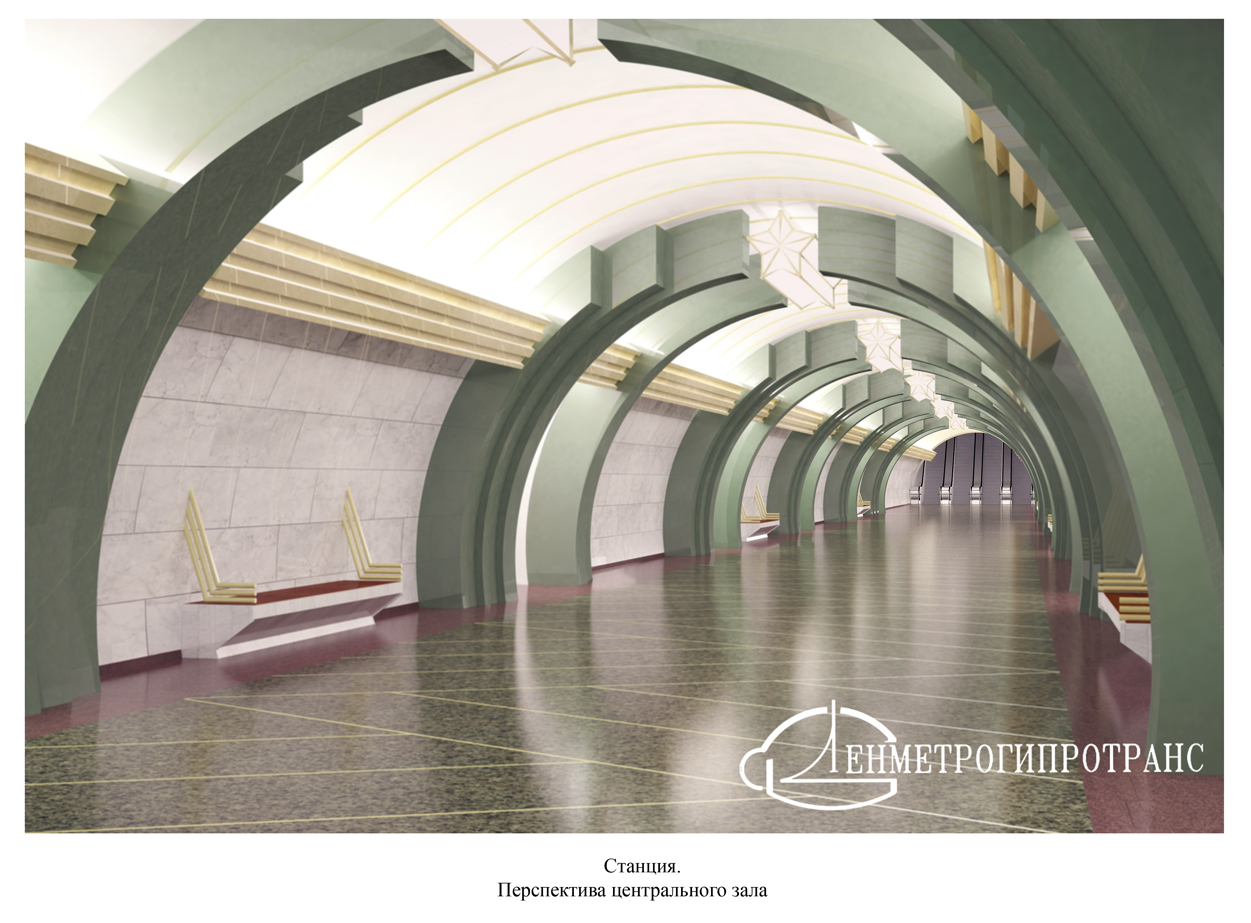 Несмотря на это, как говорят в «Ленметрогипротрансе», проект и тематику было решено не менять. Так, центральный зал подземного вестибюля опоясывают разорванные полукольца, которые по своей стилистике напоминают памятник «Разорванное кольцо» на берегу Ладожского озера. Военная тематика будет усилена пятиконечными звездами, которые будут расположены в месте разрыва полуколец.