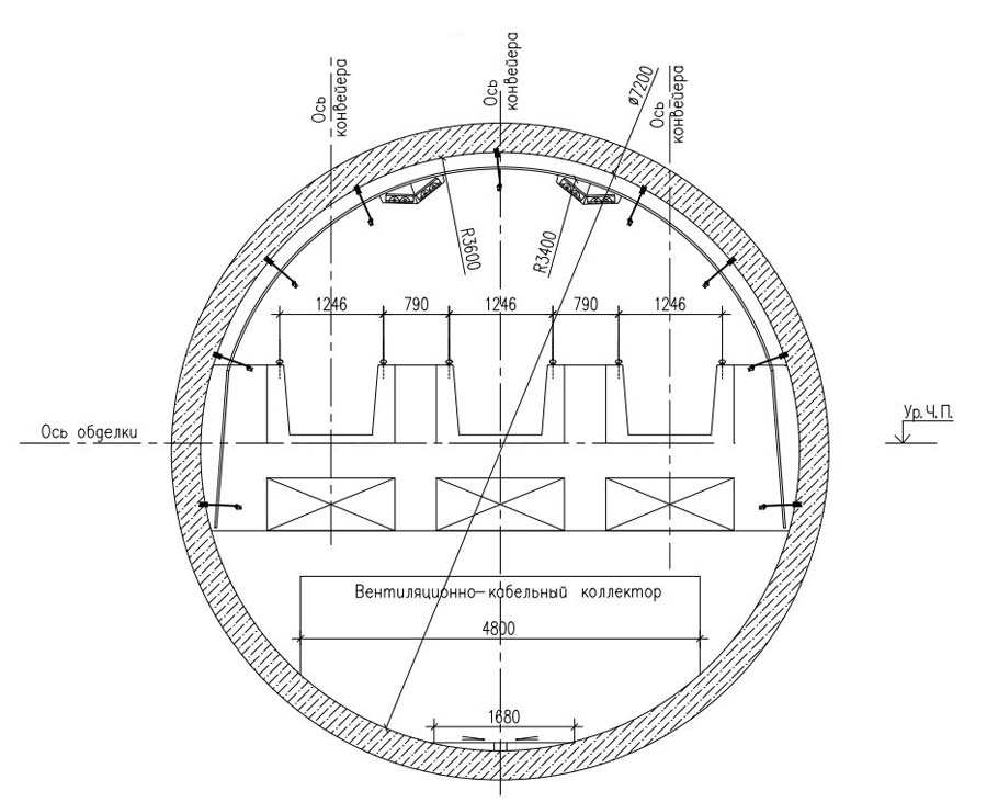 3. Вертикальная вентсбойка нижнего коллектора переходного коридора с верхним перегонным тоннелем Кольцевой: