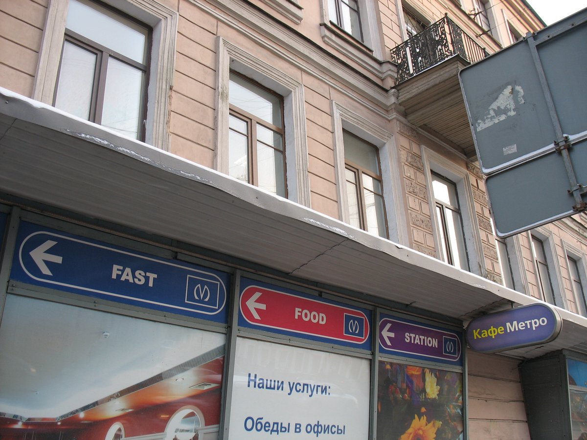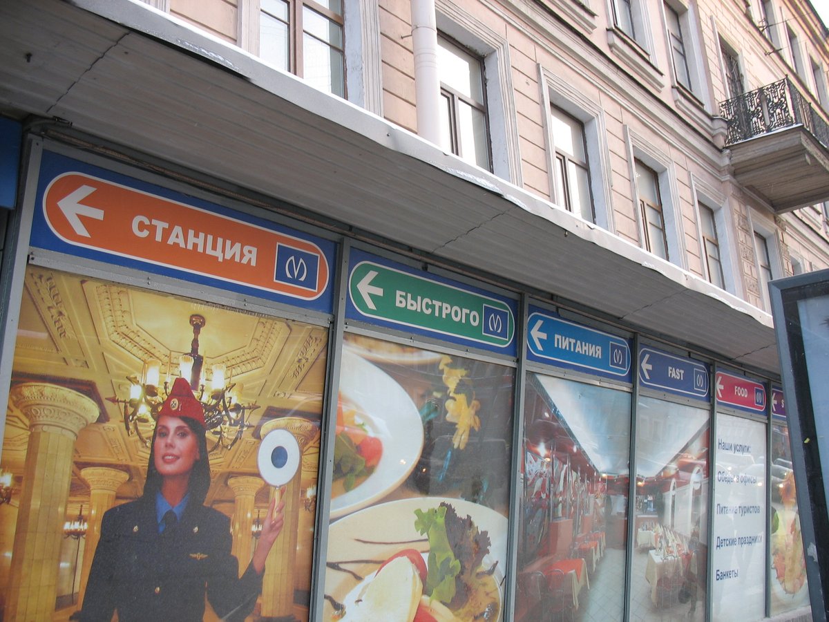 В качестве юмора, предлагаю взглянуть на оформление витрин кафе "Метро" на Техноложке. Вполне в духе НИПа