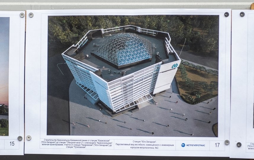 Готовый фасад вестибюля станции «Юго-Западная» Красносельско-Калининской линии Петербургского метрополитена.
