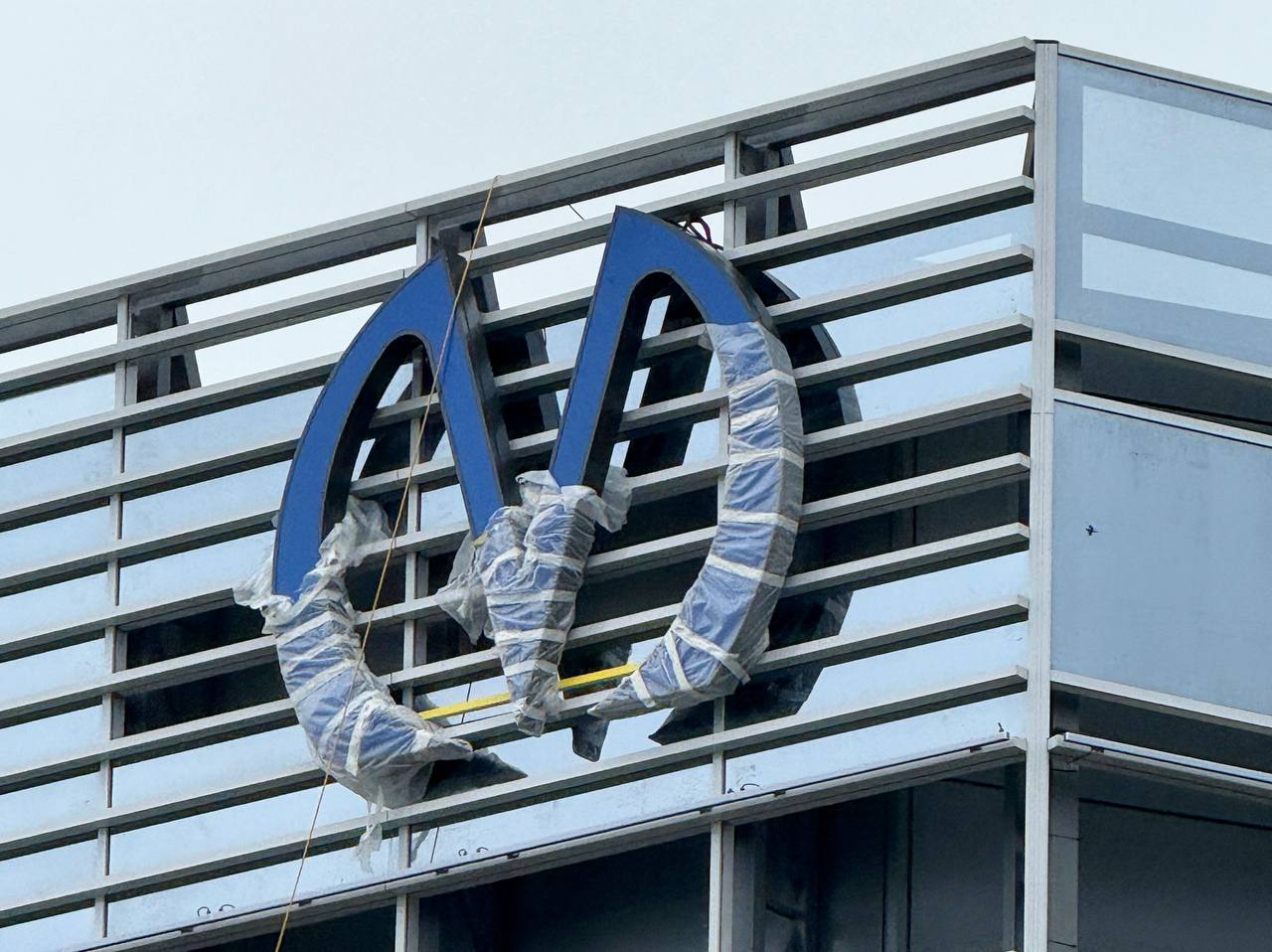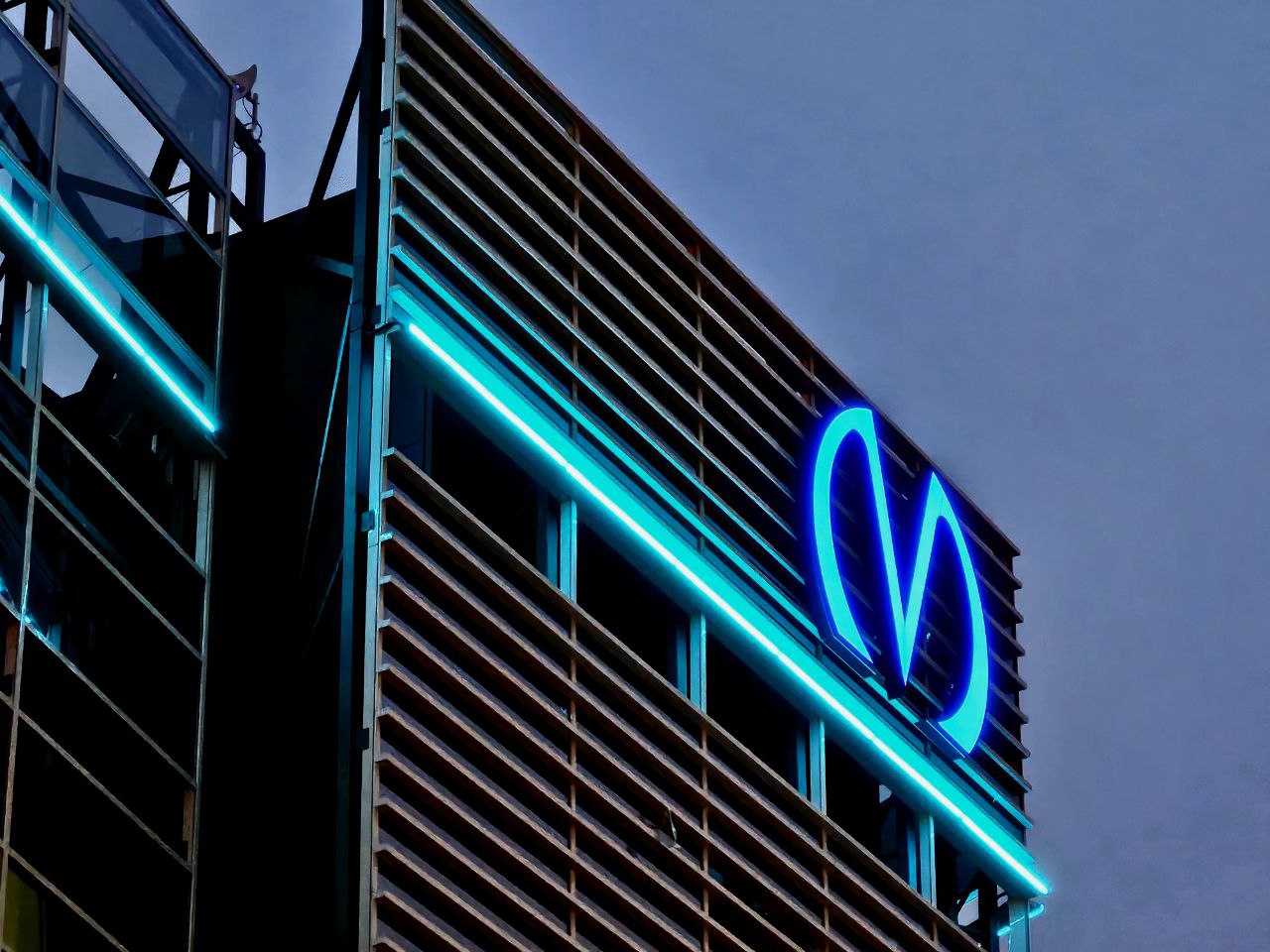 Логотип представляет собой световую конструкцию габаритами 3 на 2 метра.