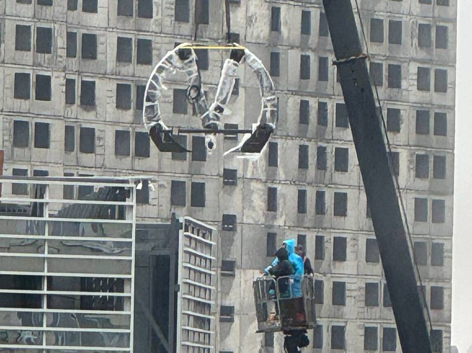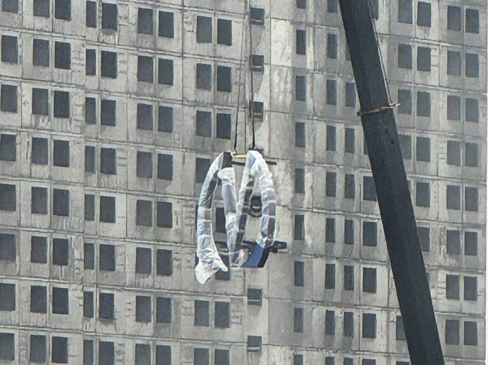 На строительную площадку вестибюля станции «Юго-Западная» Красносельско-Калининской линии доставлены буквы М - логотипа Петербургского метрополитена, которые будут установлены на фасаде здания.