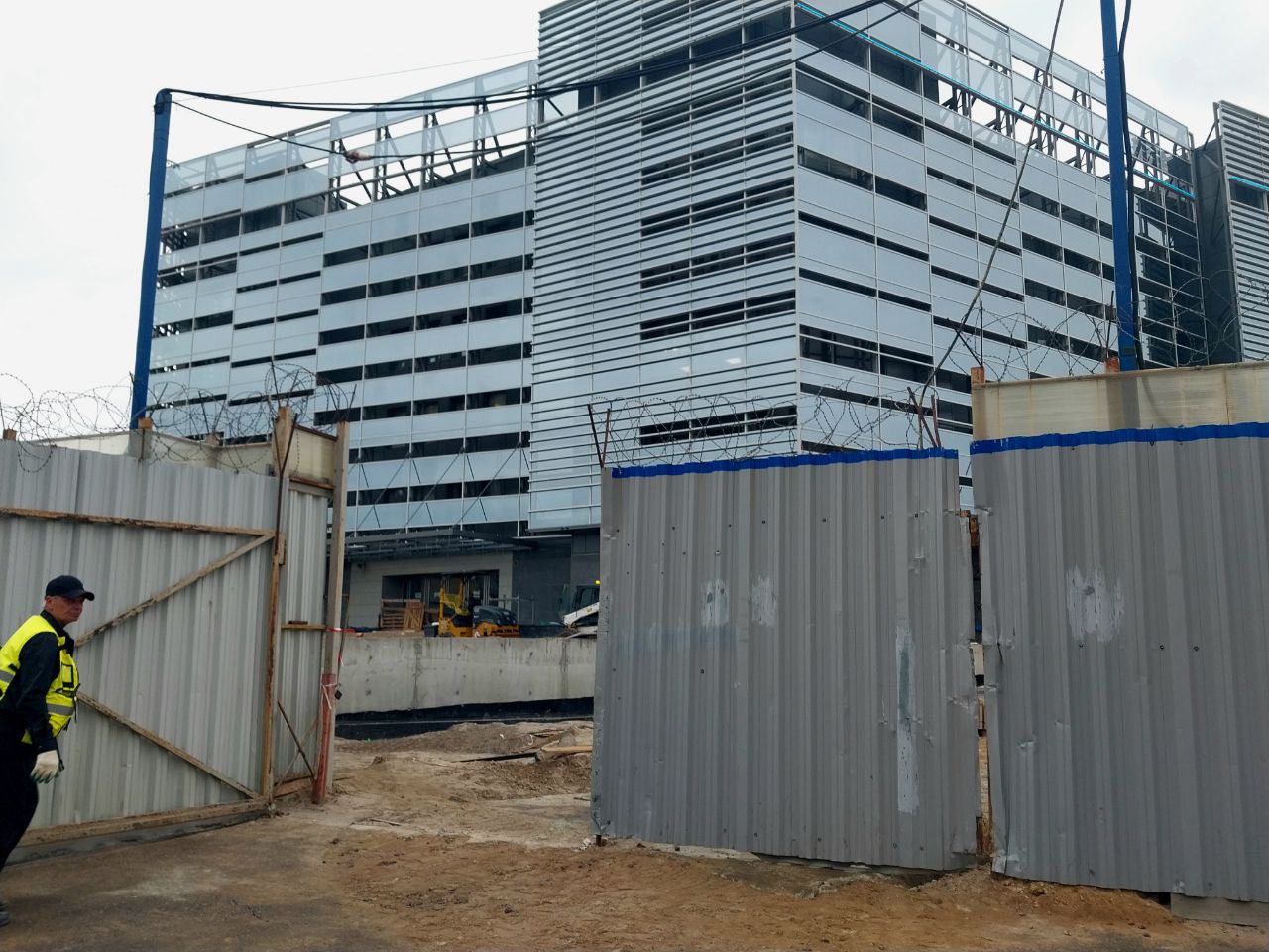 На строящийся вестибюль станции «Юго-Западная» Красносельско-Калининской линии Петербургского метрополитена установлен второй логотип «Петербургского метрополитена».