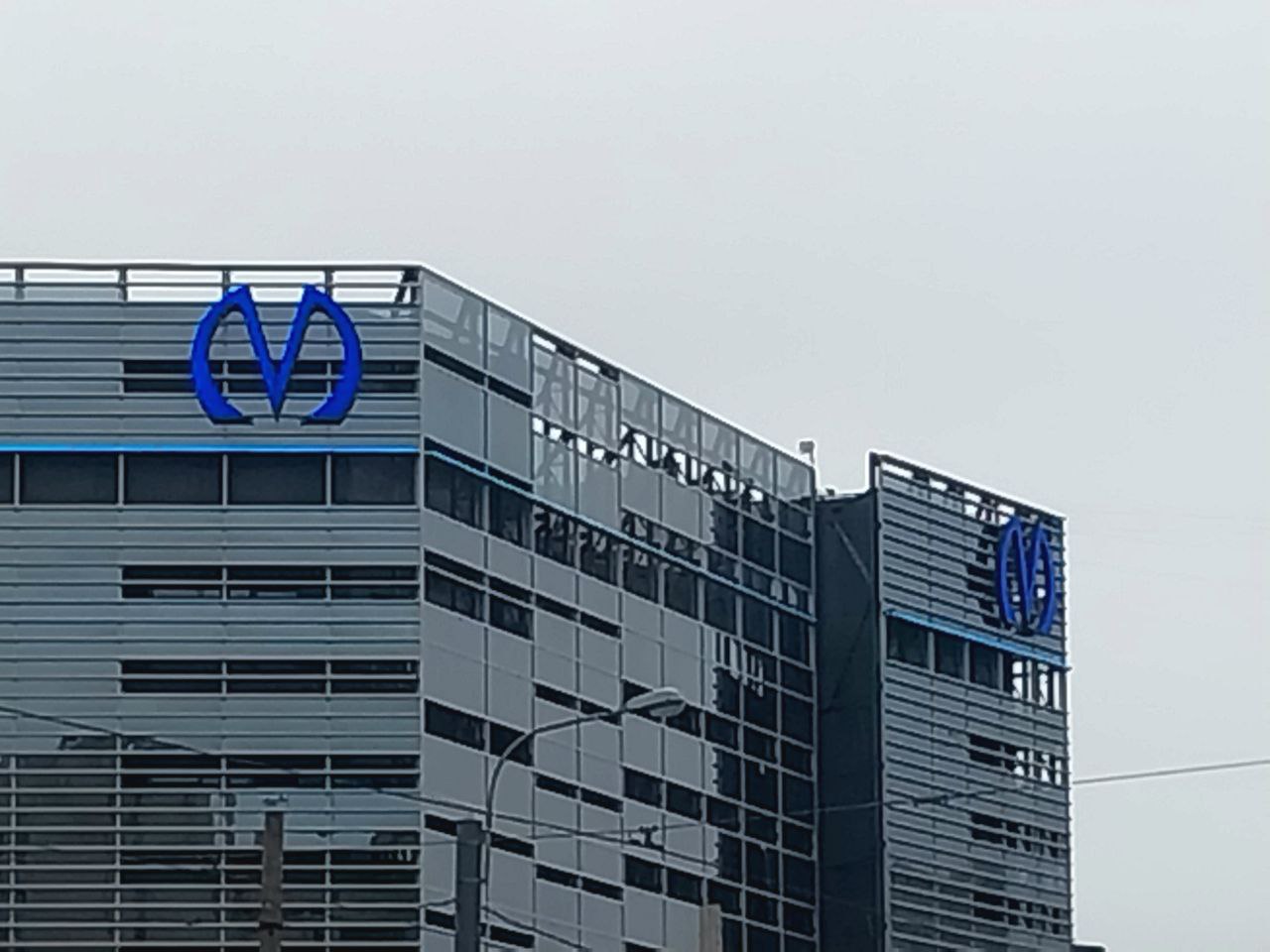 Очень странное решение налепить обе буквы М на две соседние грани здания. В итоге со стороны Маршала Казакова её и не видно, пока вплотную не подъедешь. Логичнее было бы лепить их через одну грань - тогда с любой стороны был бы виден логотип.