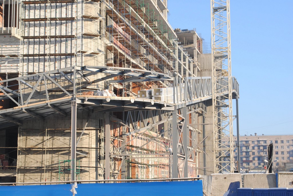 Начали остеклять фасад 1/2 этажей со стороны Бухарестской ул. Со стороны Белы Куна тоже устанавливают профиль под остекление.