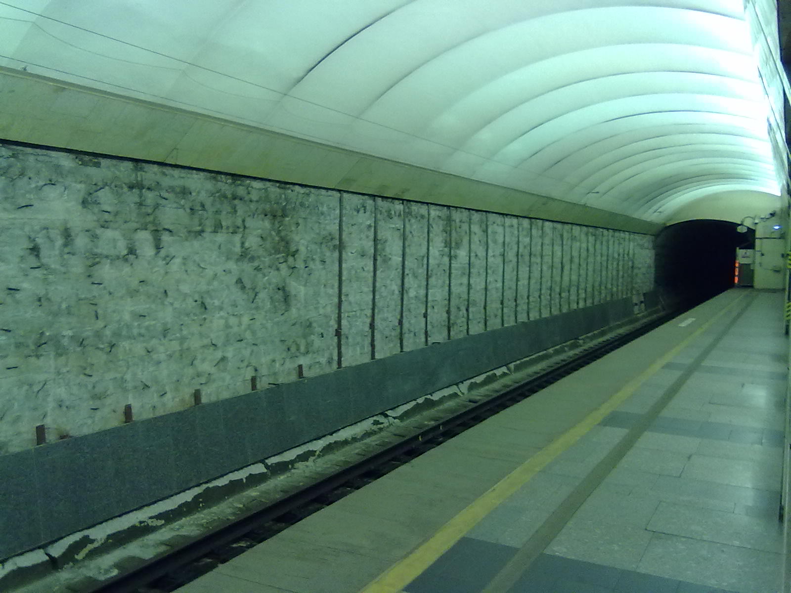 Начали облицовку стен по обоим путям. Низ - серый гранит.