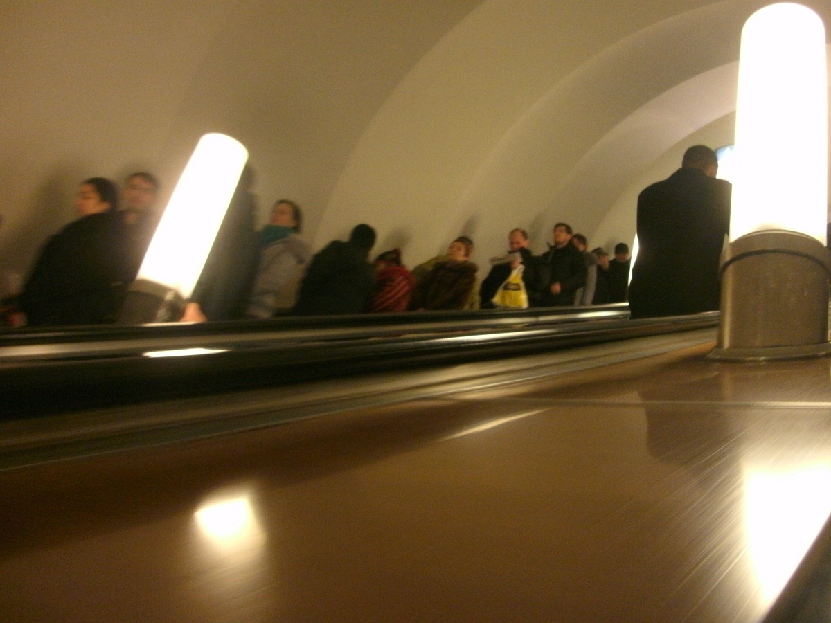 Фотографии не очень содержательные, да и на Приморской на соседний эскалатор припёрся какой-то человек и загородил весь кадр (отойти куда-либо не мне удалось, лучшее -