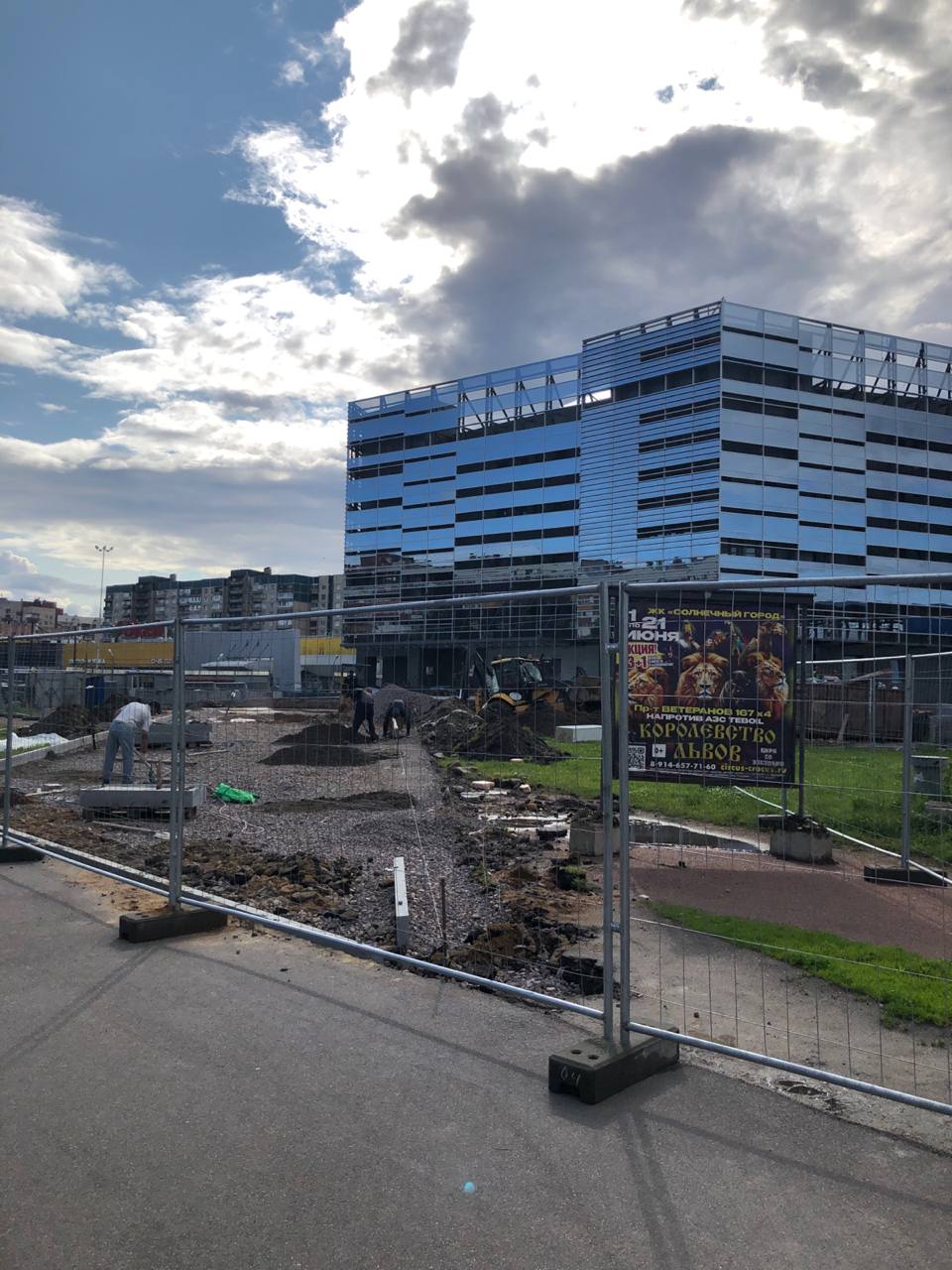 Yа строительной площадке вестибюля станции «Юго-Западная» Красносельско-Калининской линии Петербургского метрополитена продолжаются работы по благоустройству прилегающей территории.