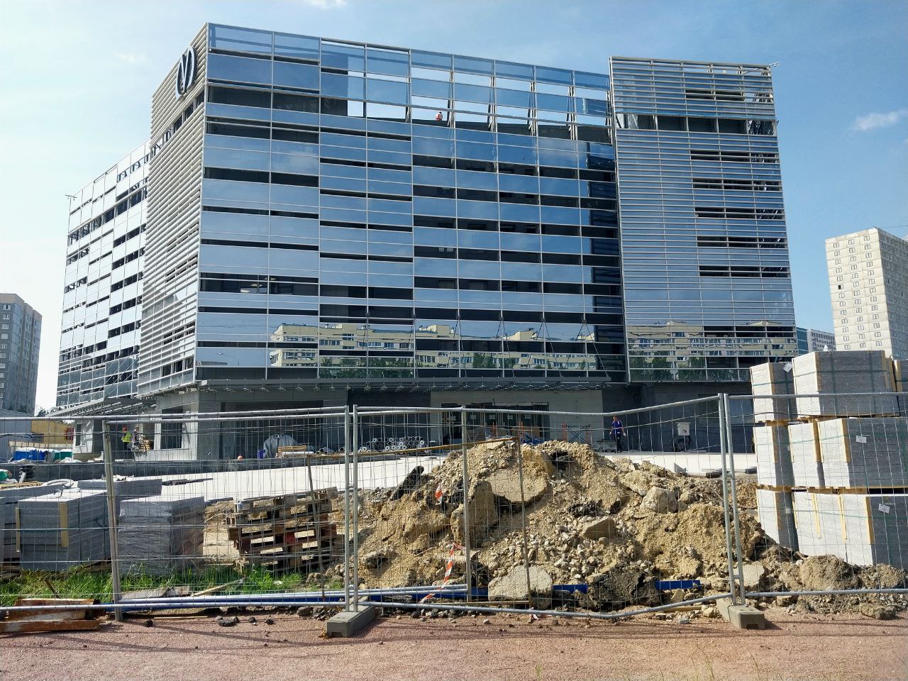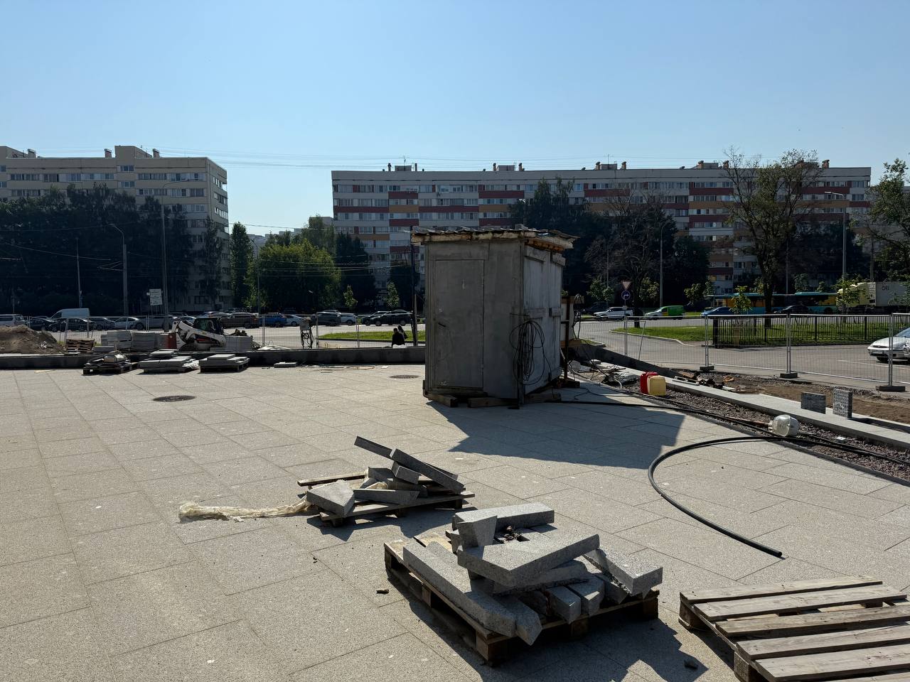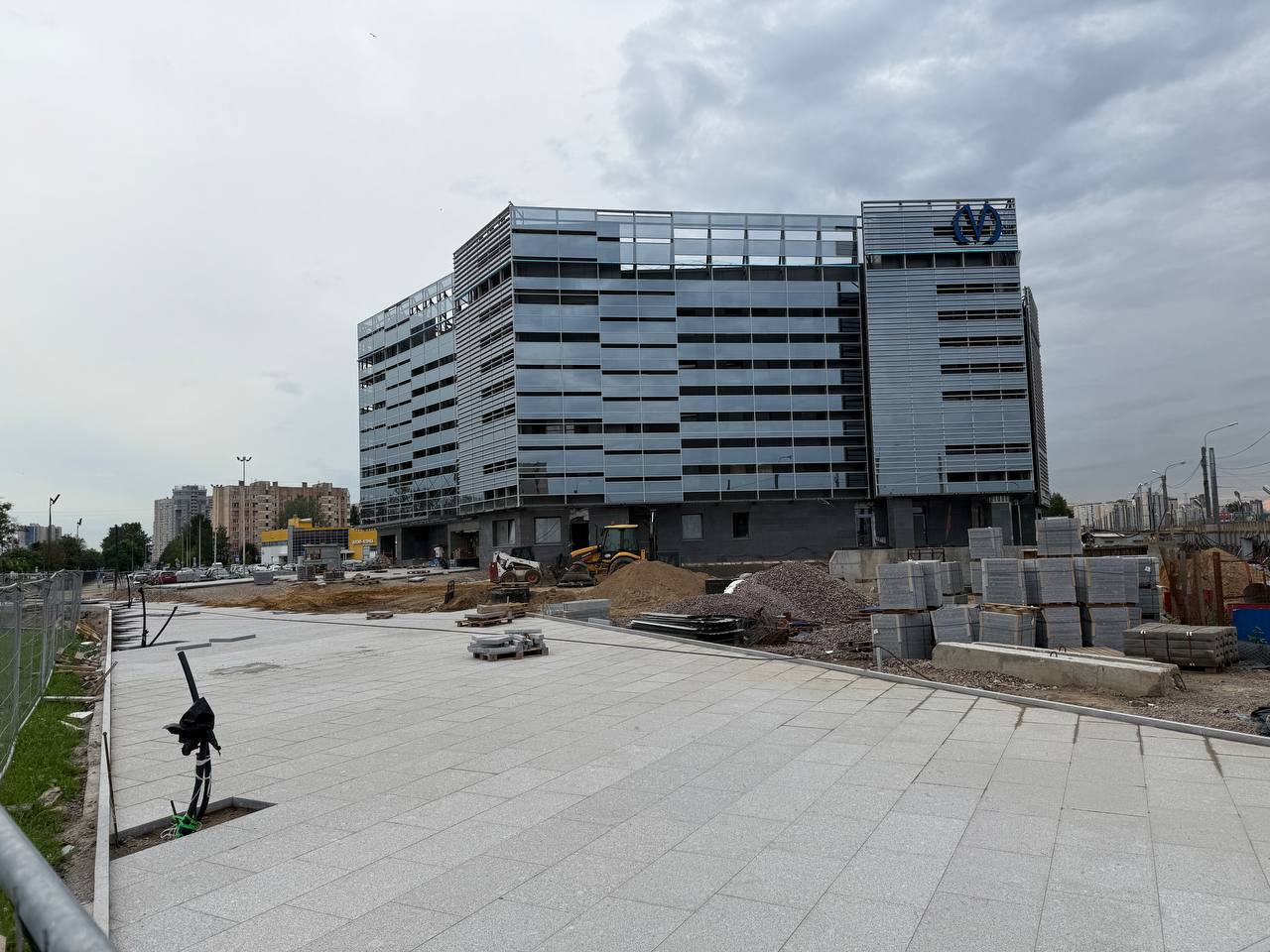 - Формируются пешеходные дорожки для подхода от остановок общественного транспорта со стороны проспекта Маршала Жукова к вестибюлю.