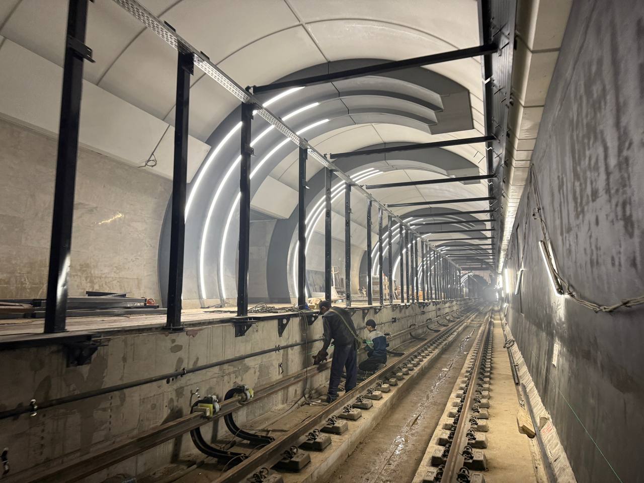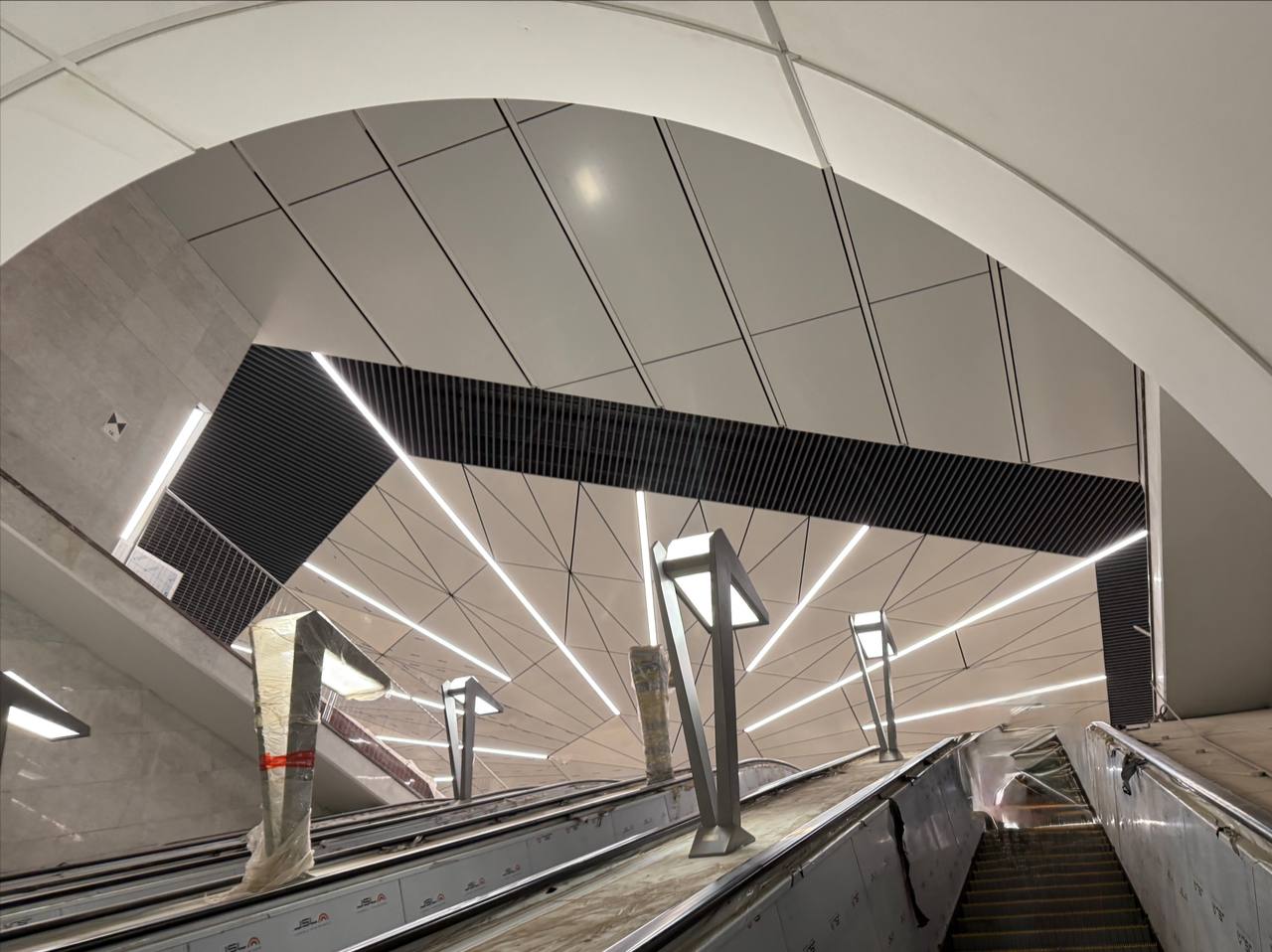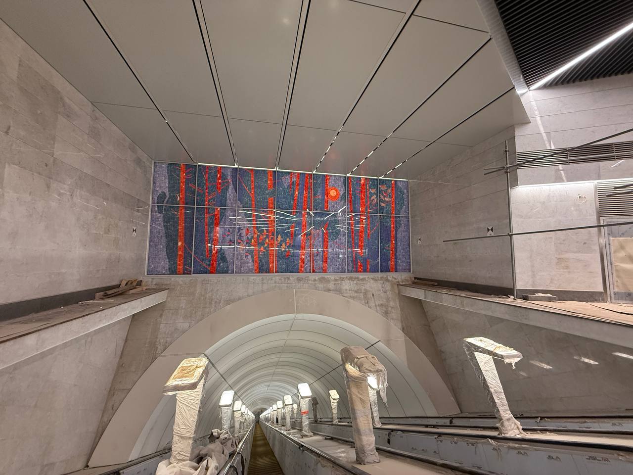 В кассовом зале вестибюля первой в Красносельском районе станции метрополитена завершился монтаж декоративного потолка.