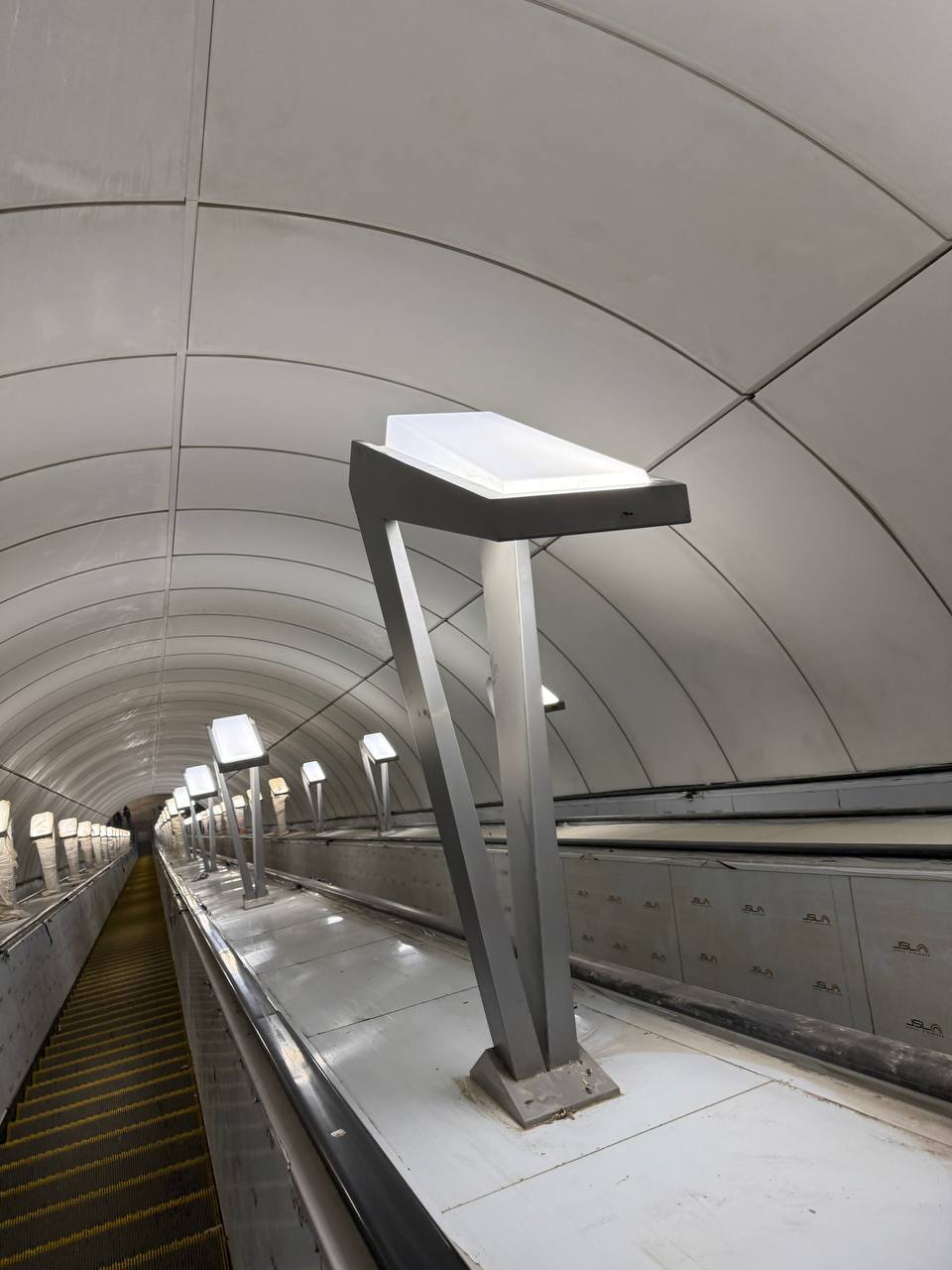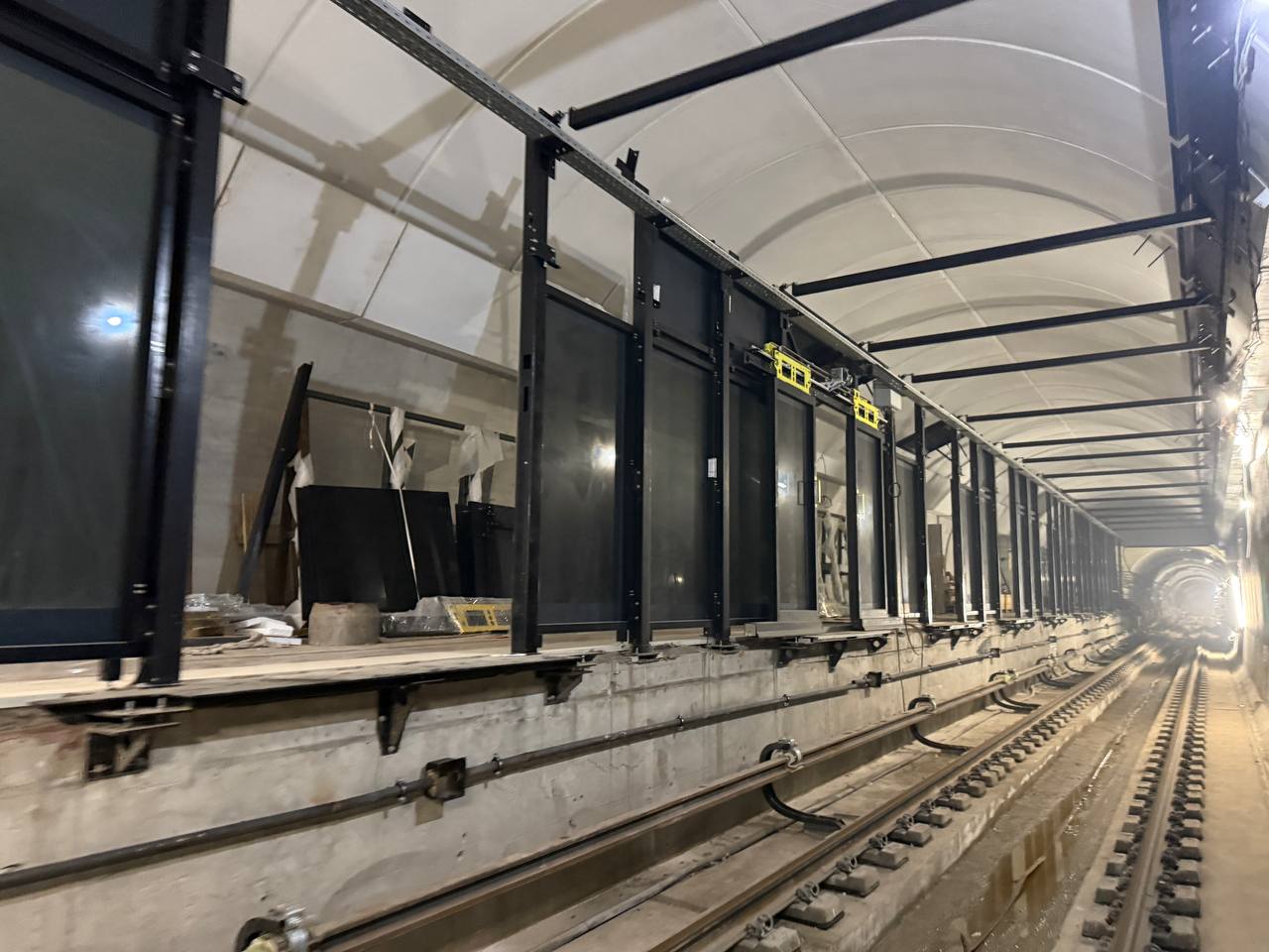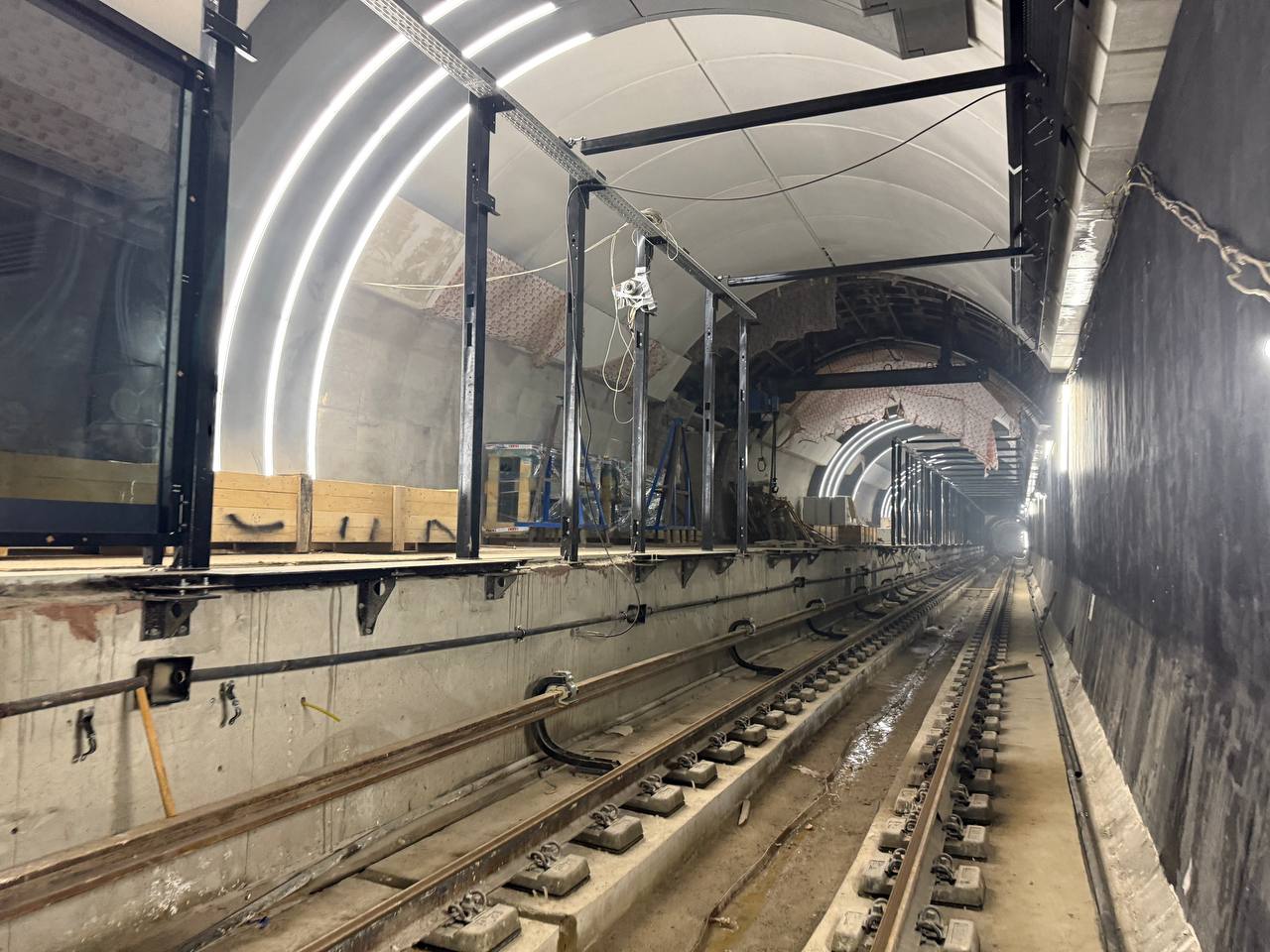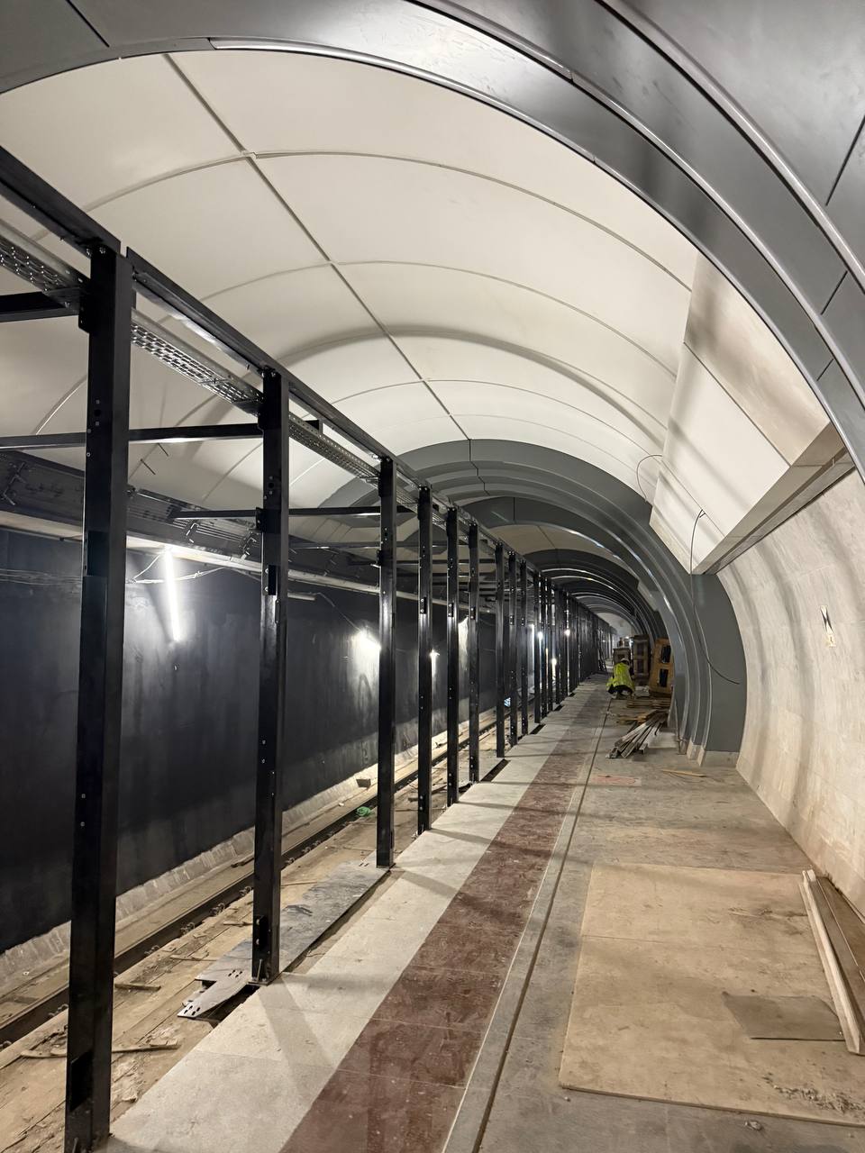 Это не постоянное освещение, так что может быть мрачно, а стену пассажиры не увидят, т. к. стекло станционных дверей будет тонировано.