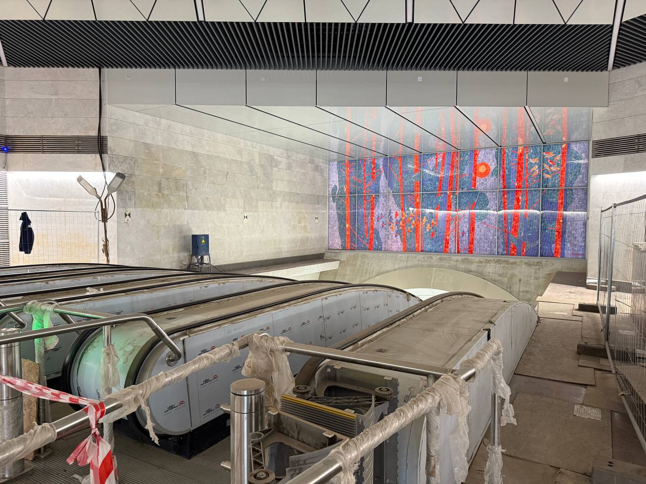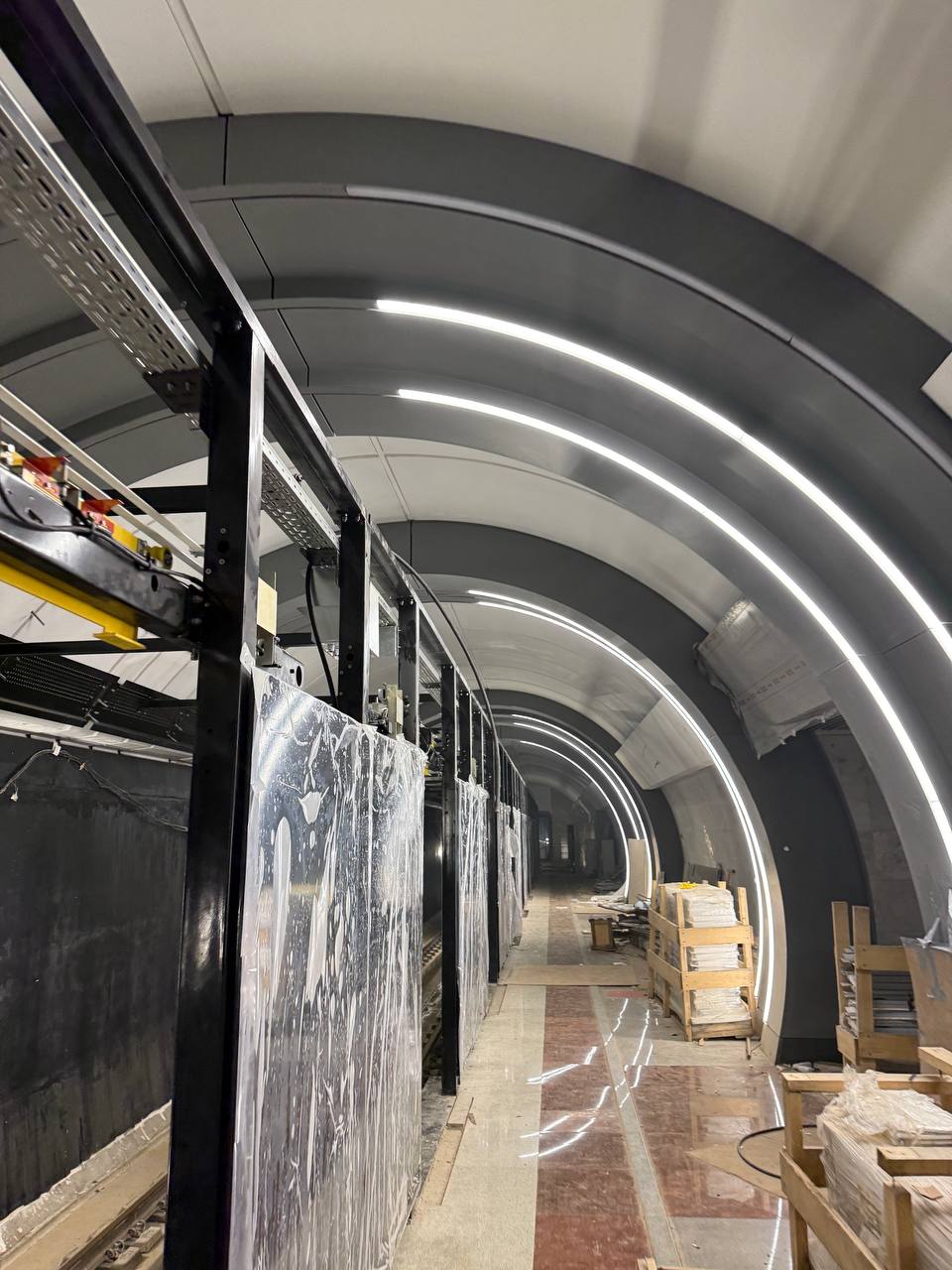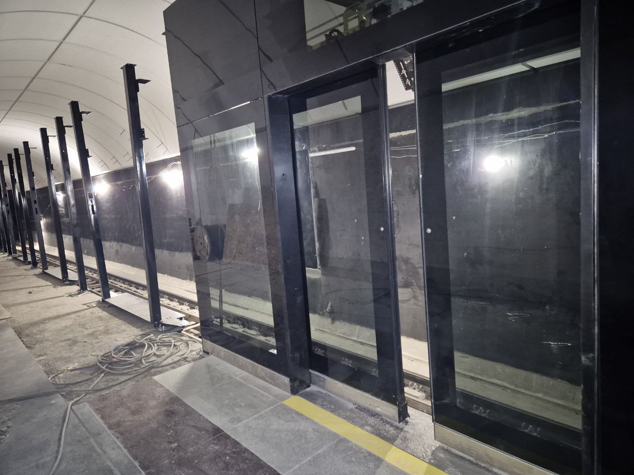 Продолжается установка платформенных дверей.