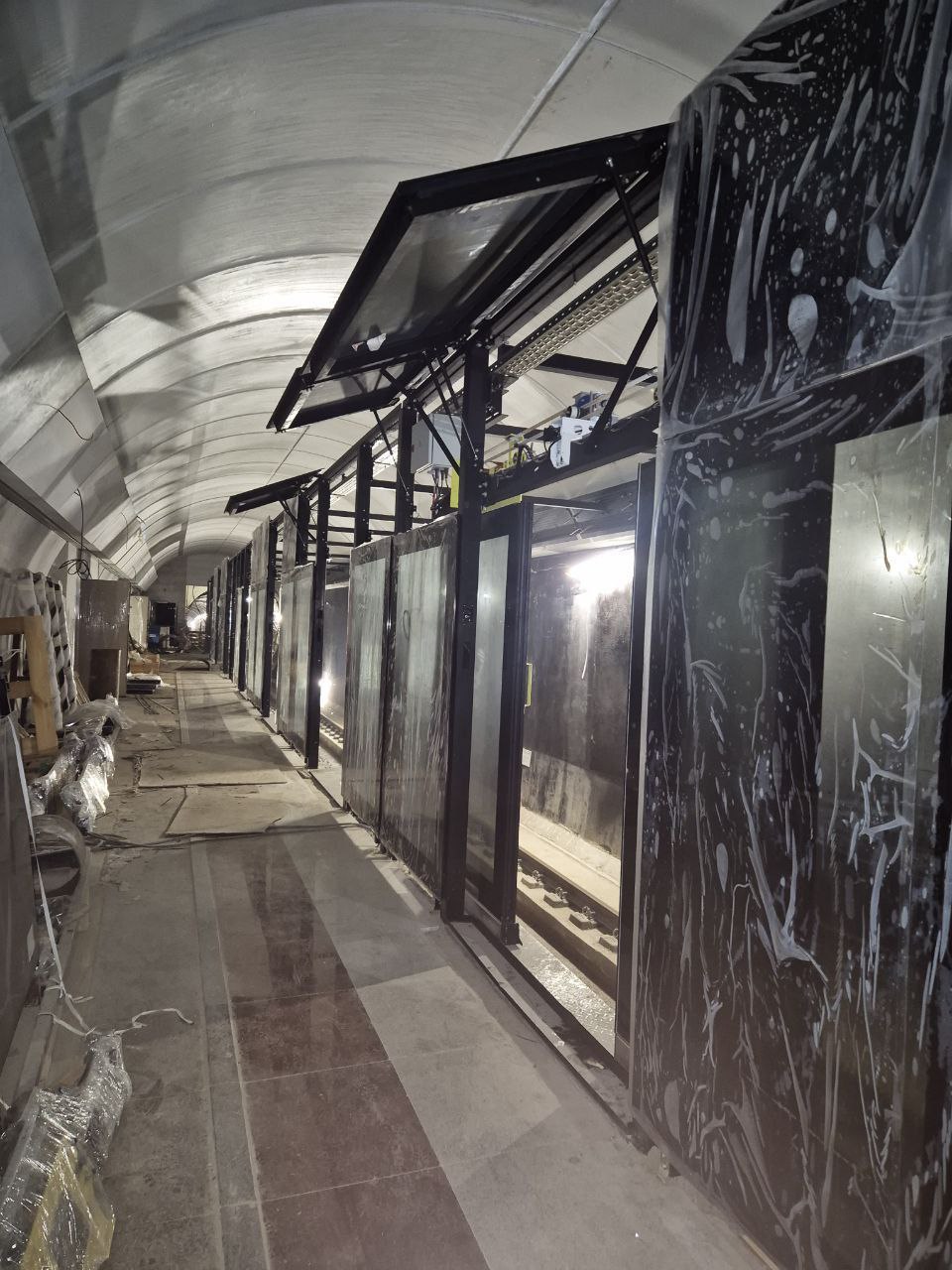 Продолжается установка станционных дверей.