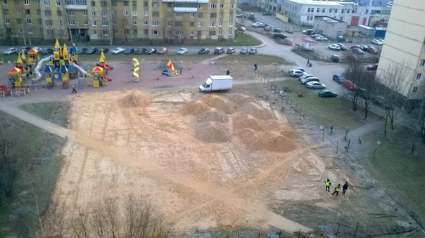 Площадку НЕ затронули, заняли половину оставшегося пустыря.