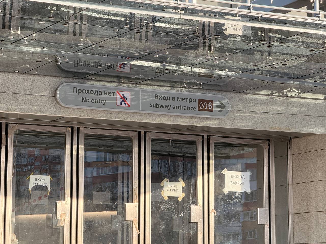 Также рядом с входом в вестибюль появился ещё один логотип Петербургского метрополитена.