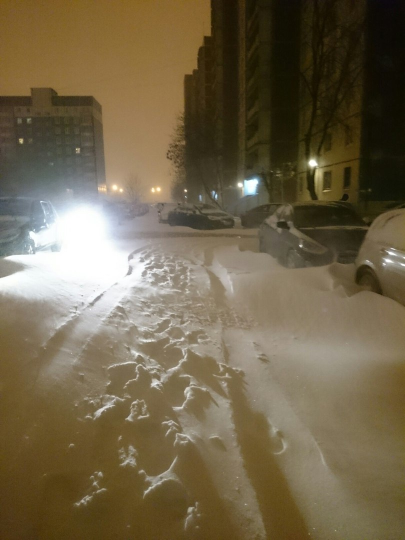Сугробы на остановках. Сугробы на жд платформах. Сугробы на тротуарах. Заметены припаркованные автомобили. Даже на крышах снега намело - скажем природе спасибо, что пока без сосулей. Автомобили не ехали, а ползли, как черепахи. Как ходил сегодня наземный общественный транспорт - лучше не рассказывать. На Невском и Литейном чистили, там было проще. Загородный днём прочистили. Вот на Троицком, на Лермонтовском, а особенно вечером возле Финляндского вокзала вообще сплошные сугробы. Как и на Ржевке, куды угодил в конце рабочего дня. Впрочем, по сравнению с утренними Озерками даже там не всё так плохо было. Тротуары кое-где очистили, но лучше бы не очищали, ибо скользко по ним ходить после снегоочистителя.